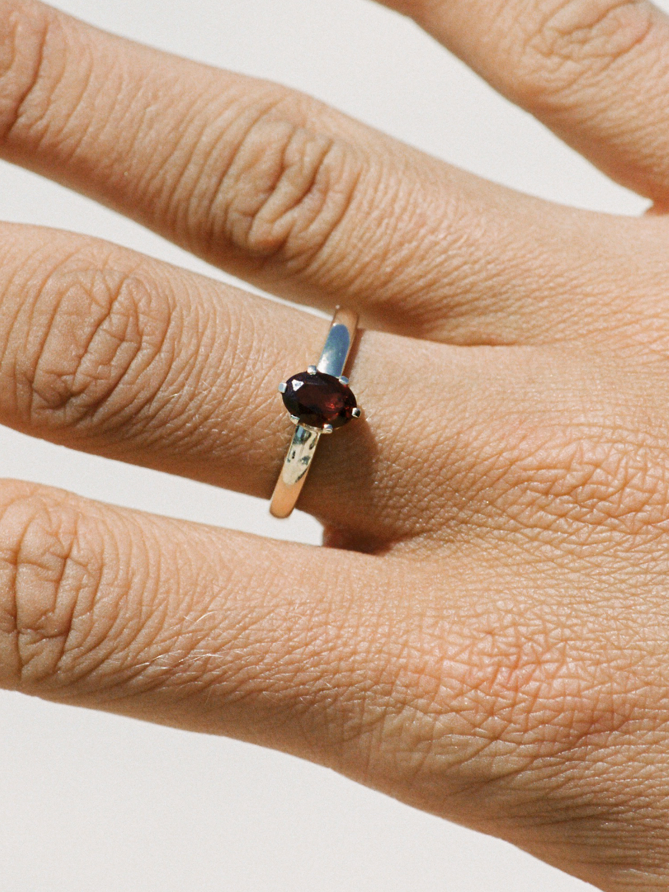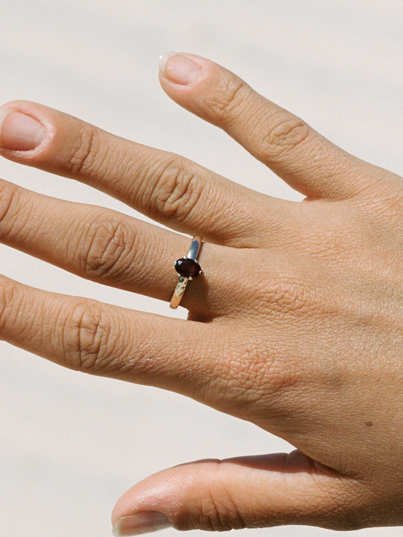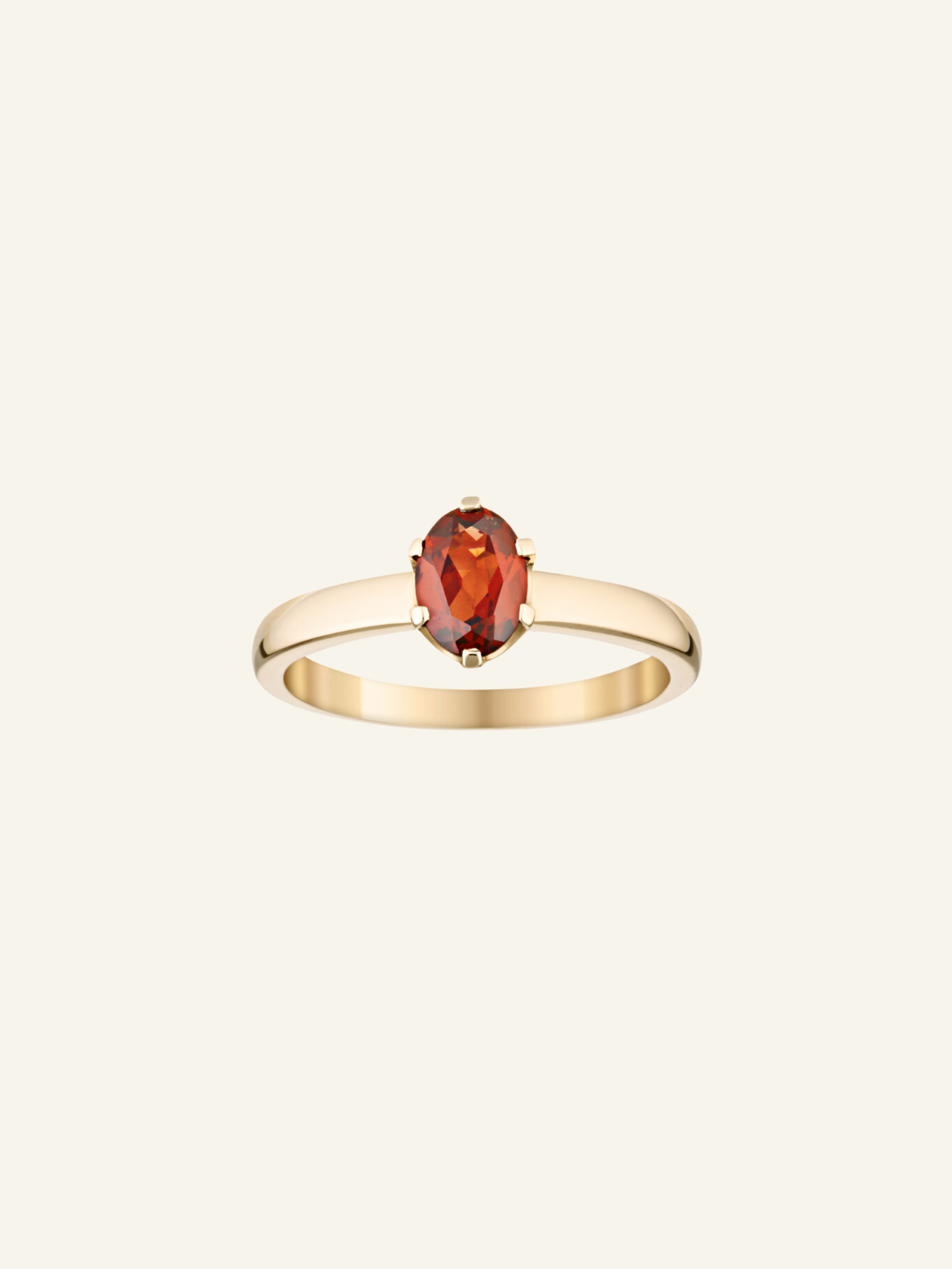 The Solid Gold Oval Garnet Ring features a timeless garnet stone that effortlessly combines beauty with meaning.