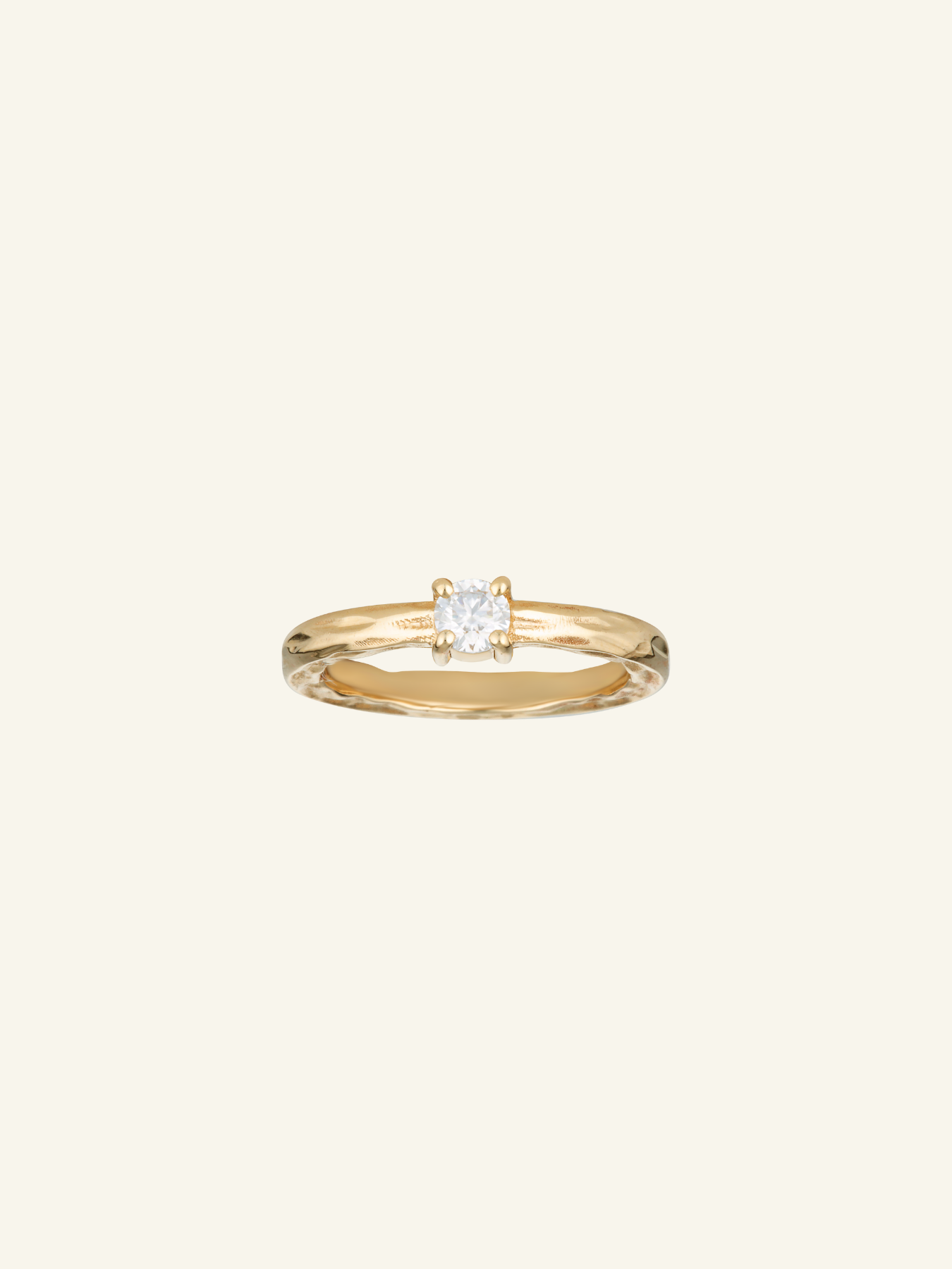 14k Hammered Moissanite Ring