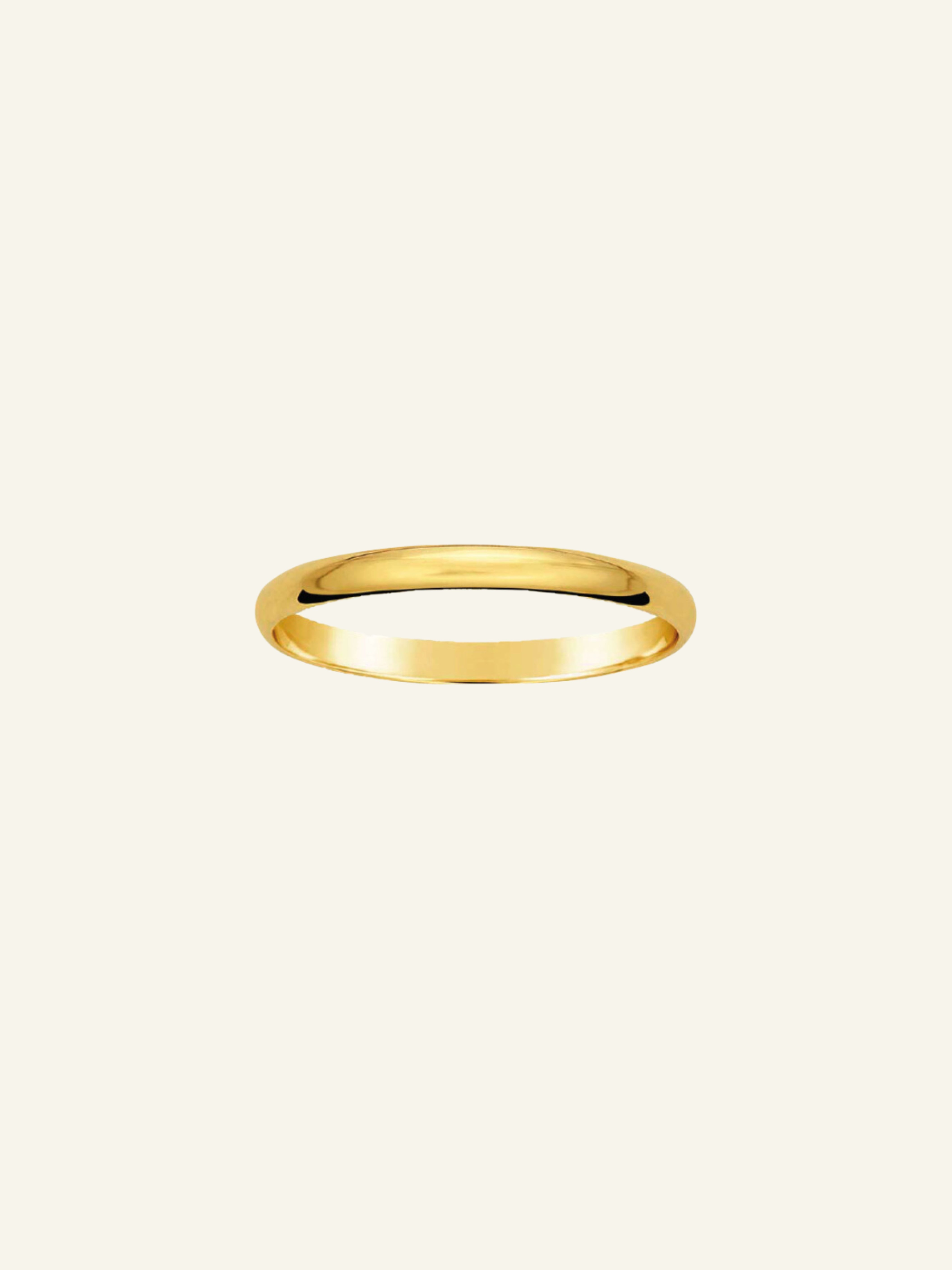 The 14k Solid Gold Thin Band Ring features a rounded surface and a flat, smooth interior. The perfect stackable ring to add to your collection.