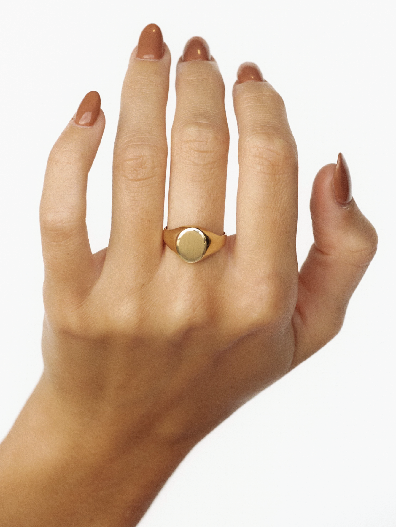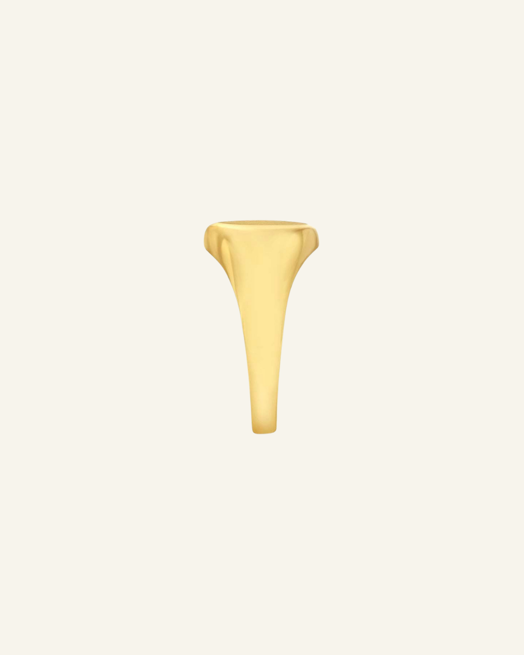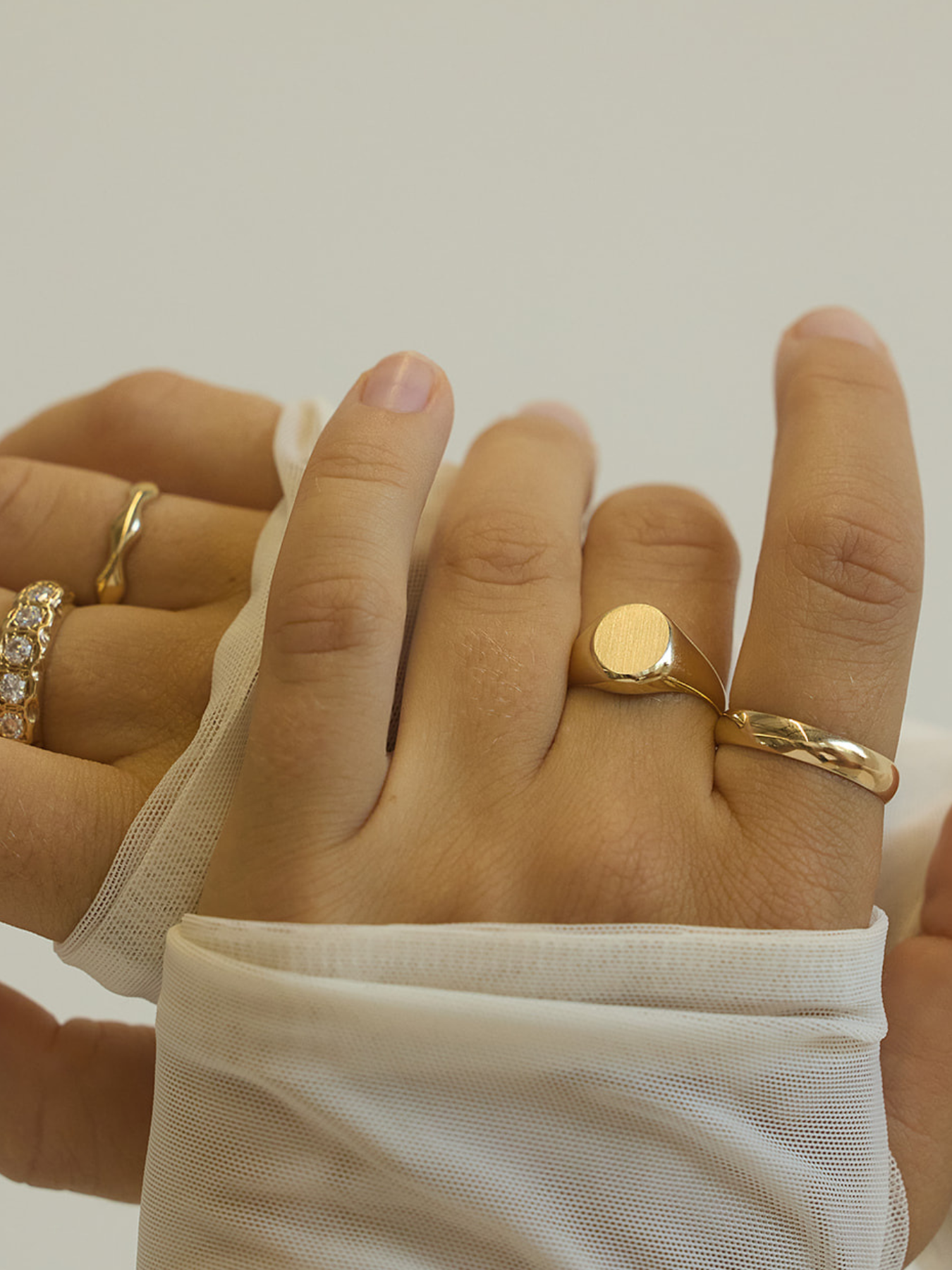 The 14k Solid Gold Signet Ring features a 11 x 9mm oval signet with a faint brushed finish. Carrying years of history, the Signet Ring is a timeless piece that will hold it's value for infinity.