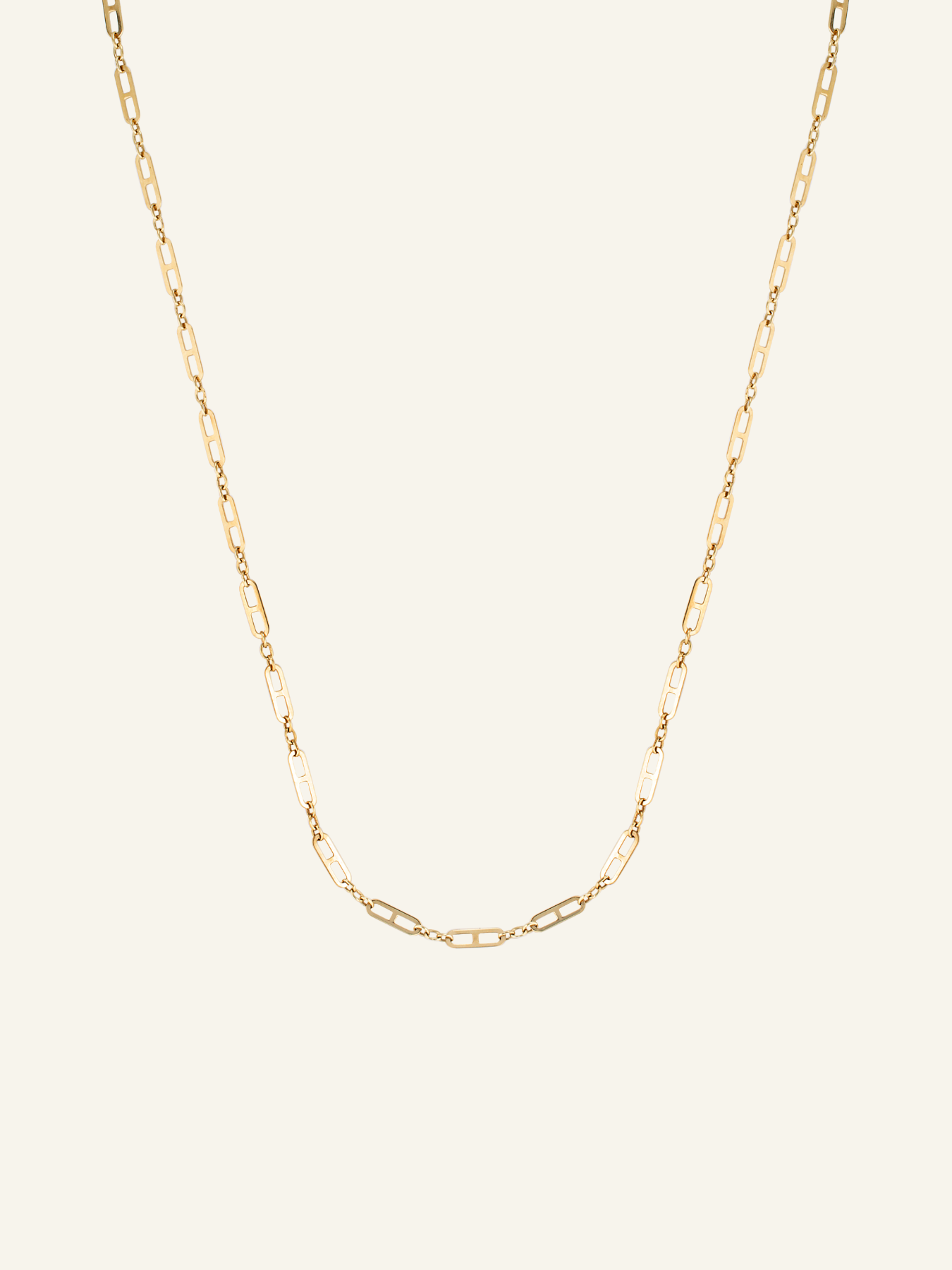 The 9k Solid Gold Open Bar Necklace features an open bar link chain design.