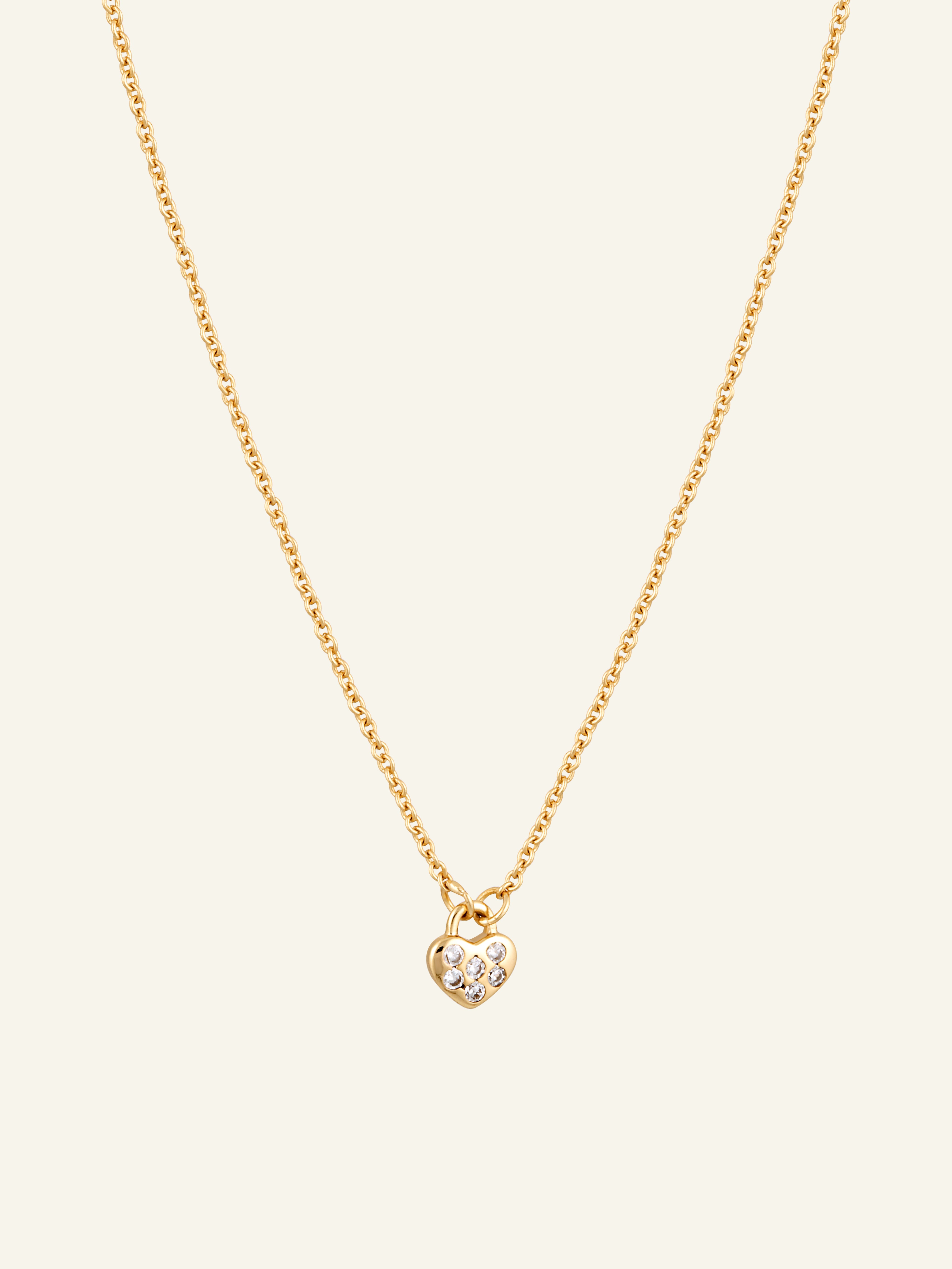The Rosie Necklace features a small heart pendant on a dainty fine chain, adorned with cubic zirconia stones.