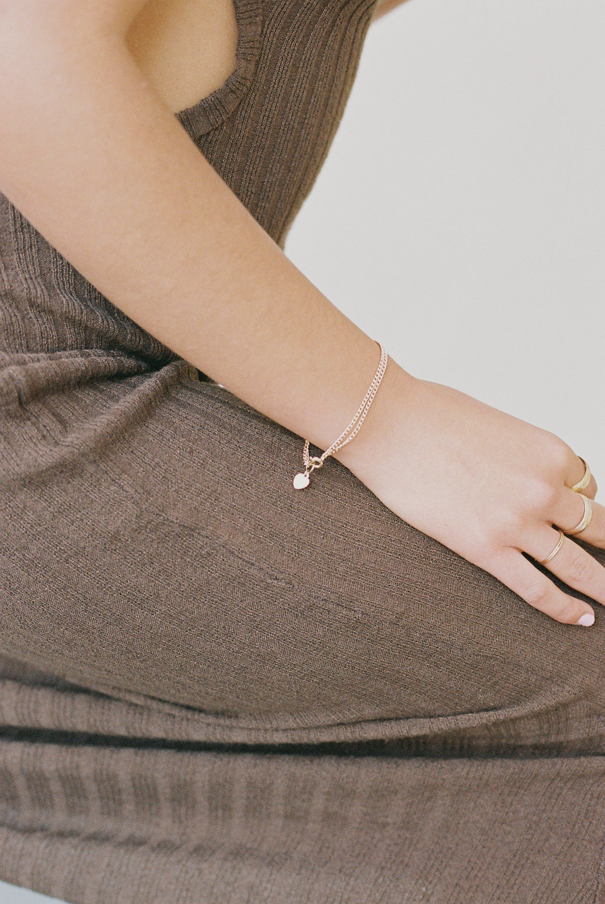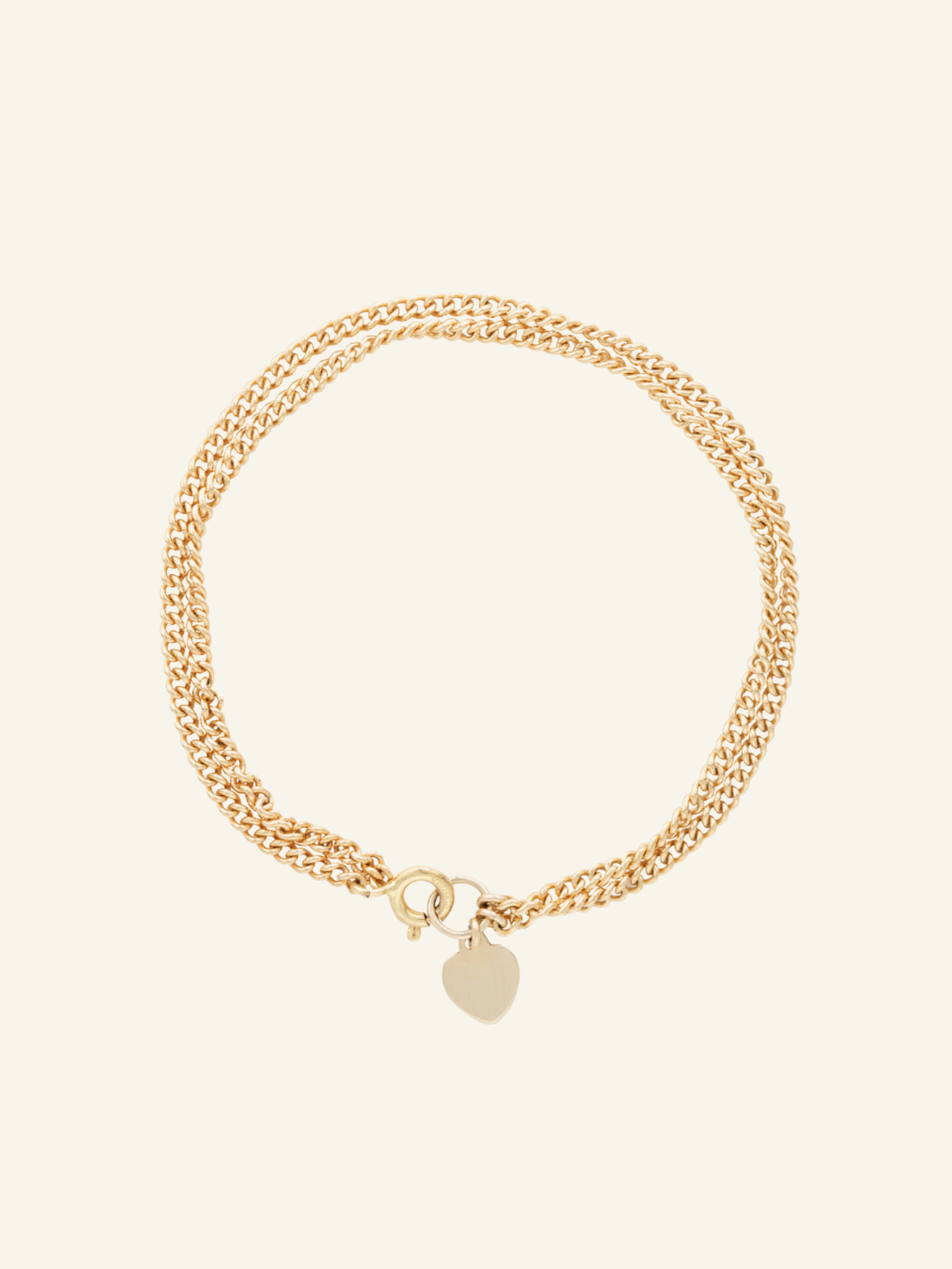 Inspired by jewellery that can take you from day through to night, the Sabrina Bracelet features a double chain connected to a delicate heart.
