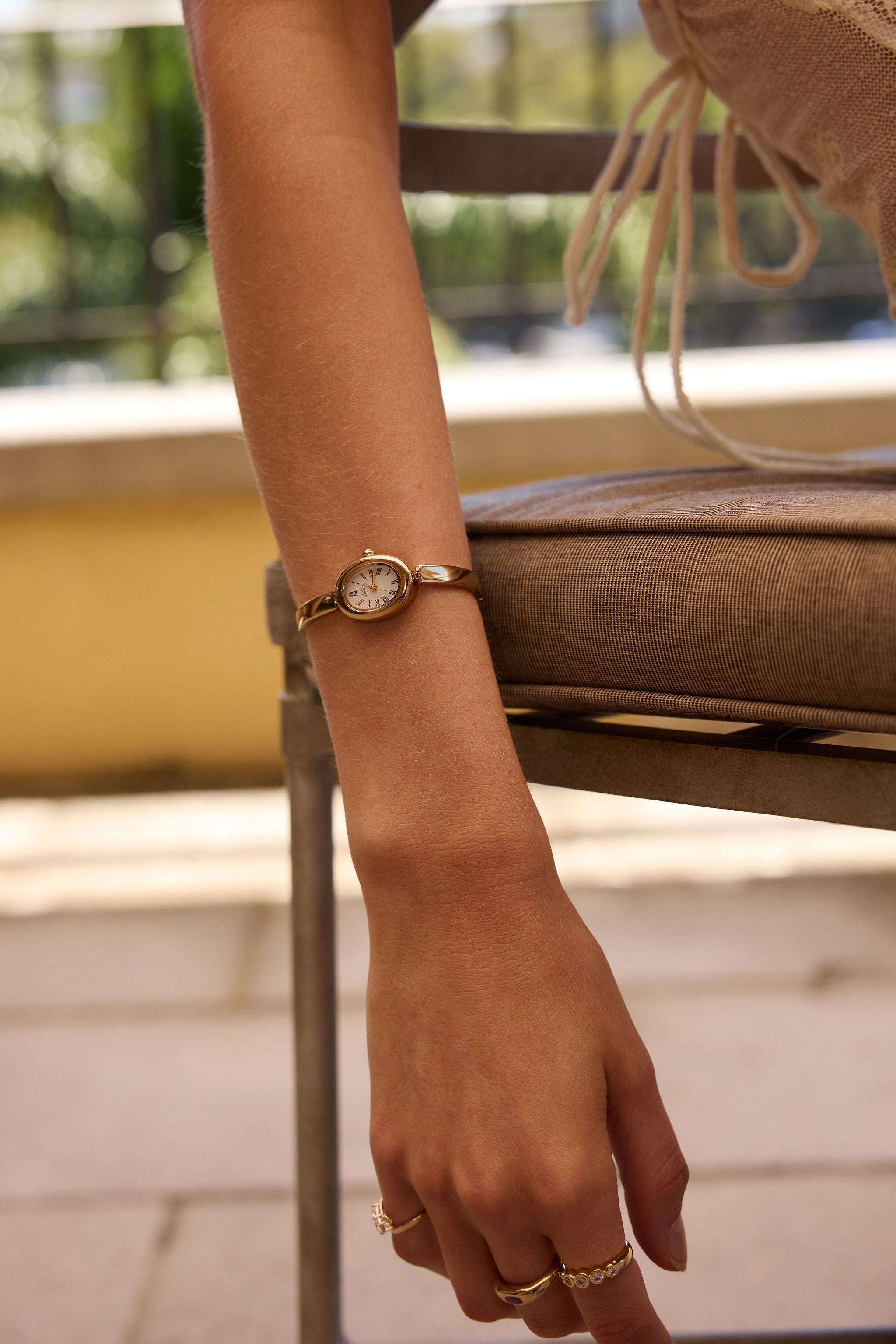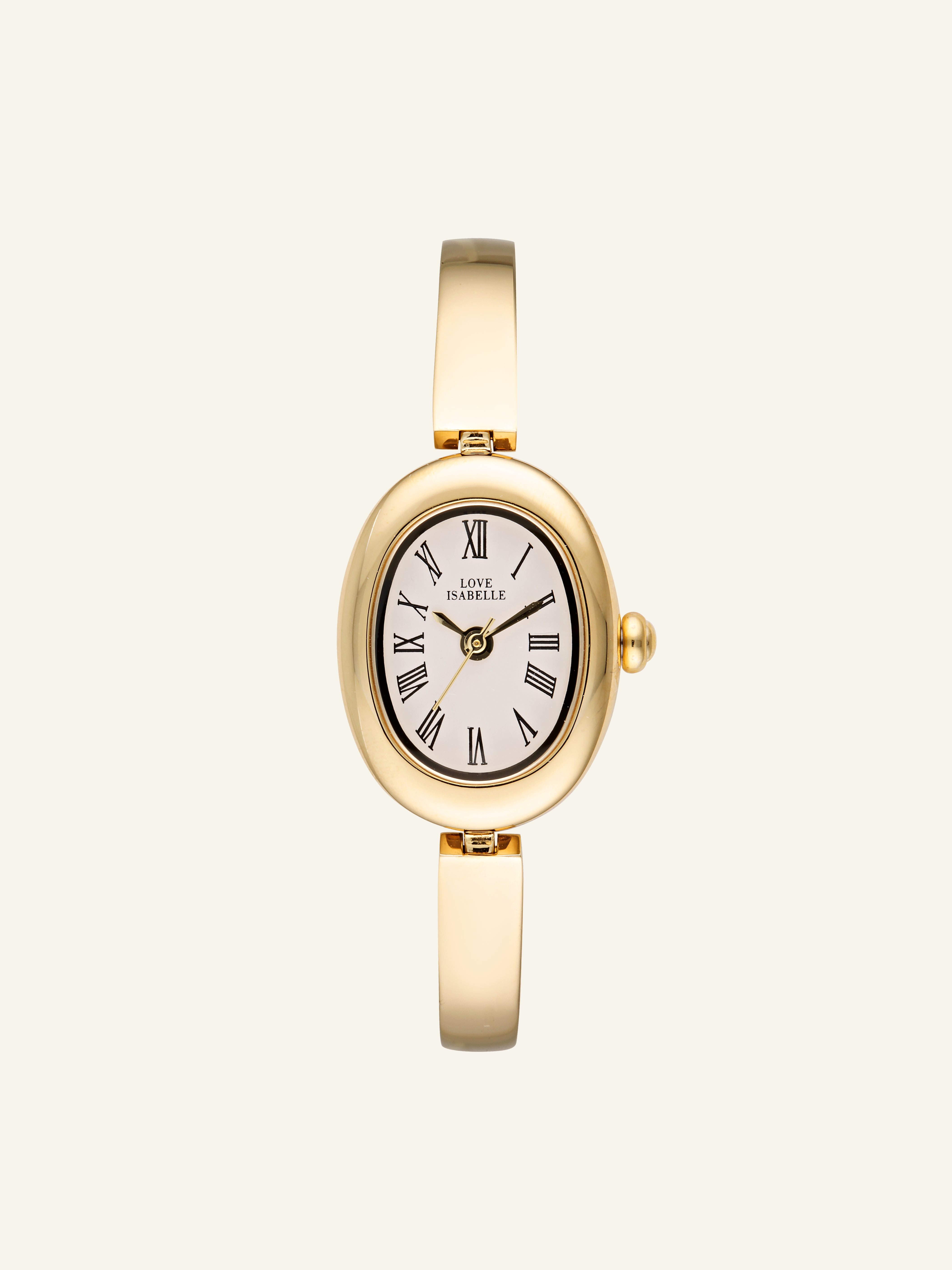 Love Isabelle introduces the Vienna Watch, our first bangle style timepiece with a harmonious oval face and adjustable bangle. This piece effortlessly elevates any outfit, blending timeless design with modern chic.