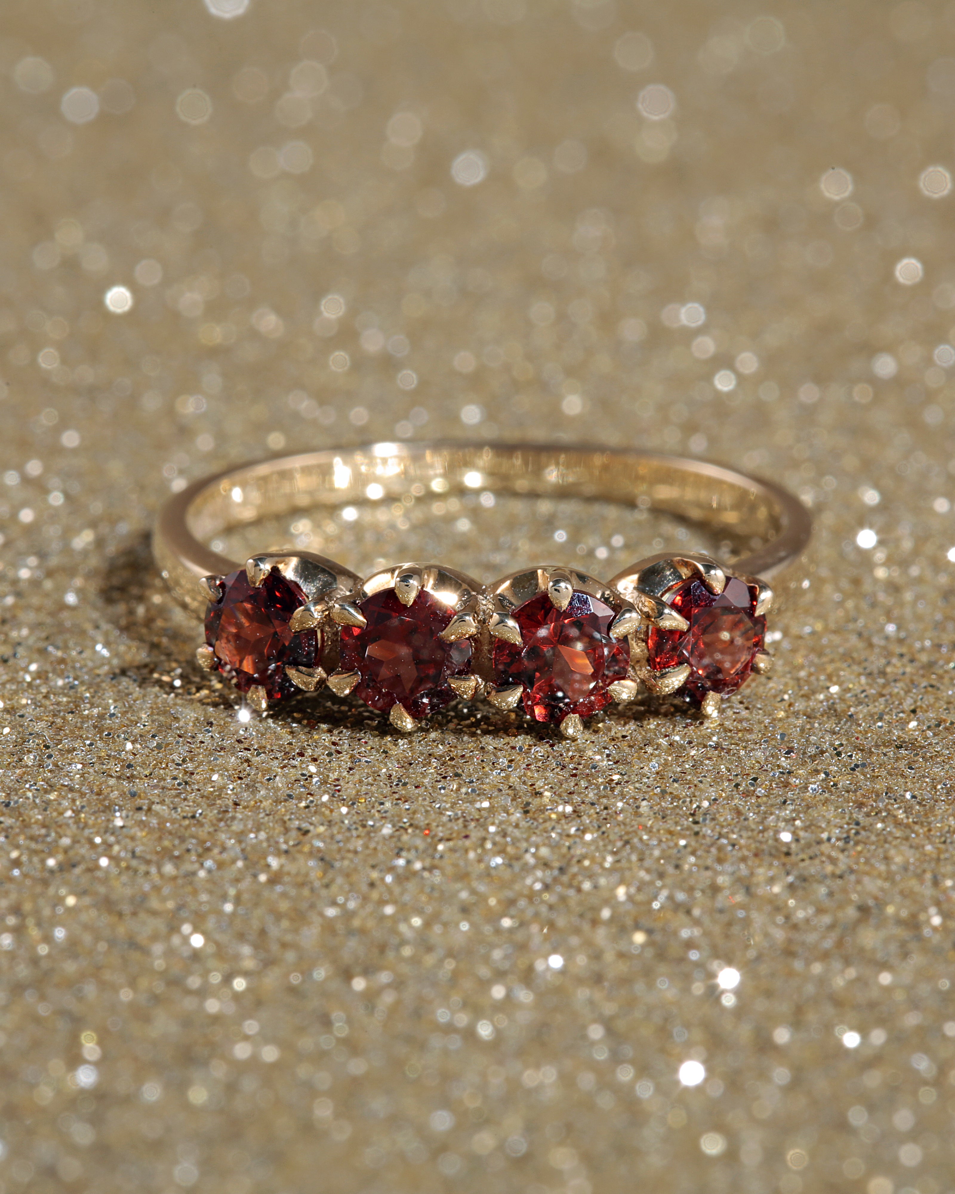 Solid Gold Four Garnet Ring