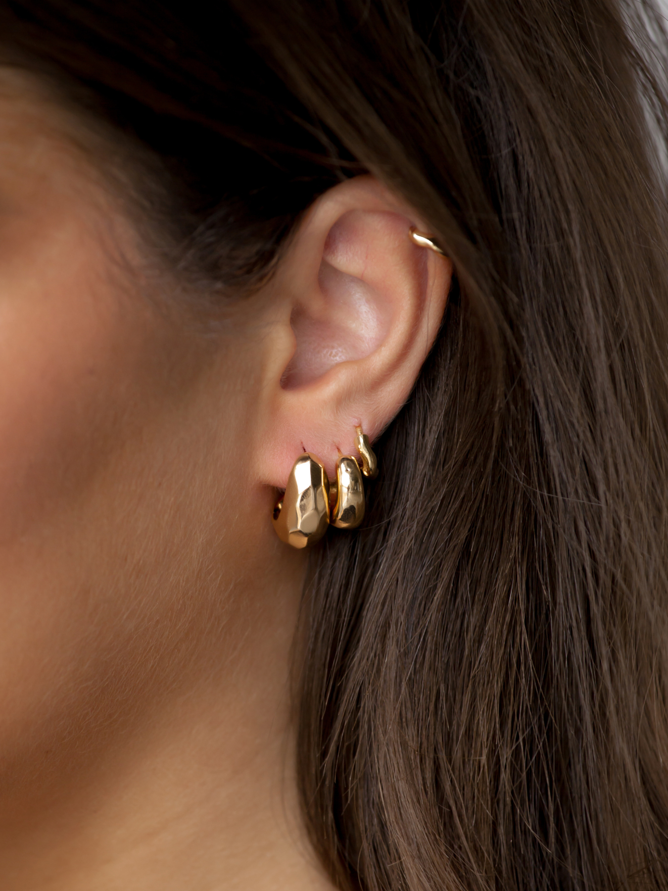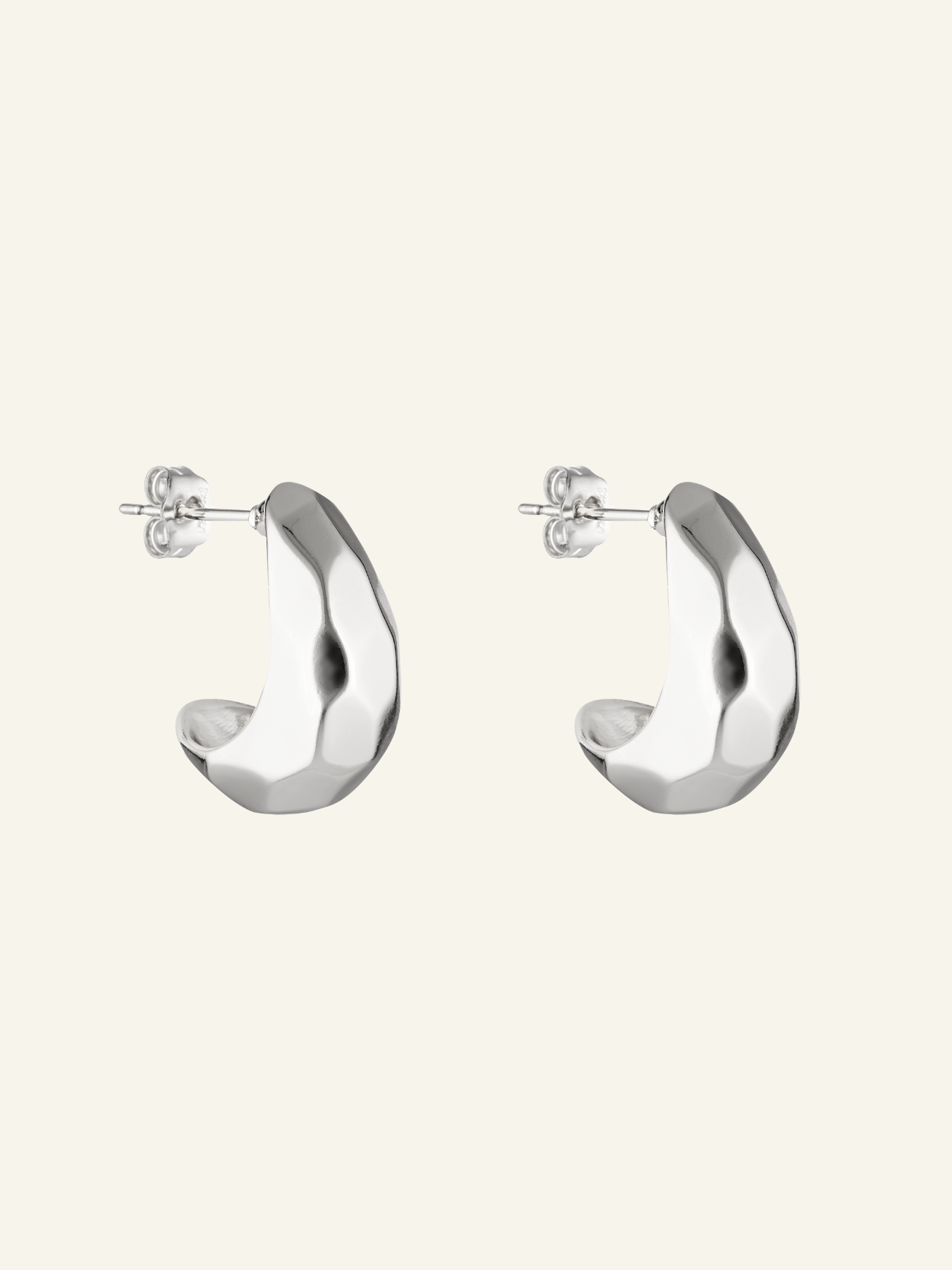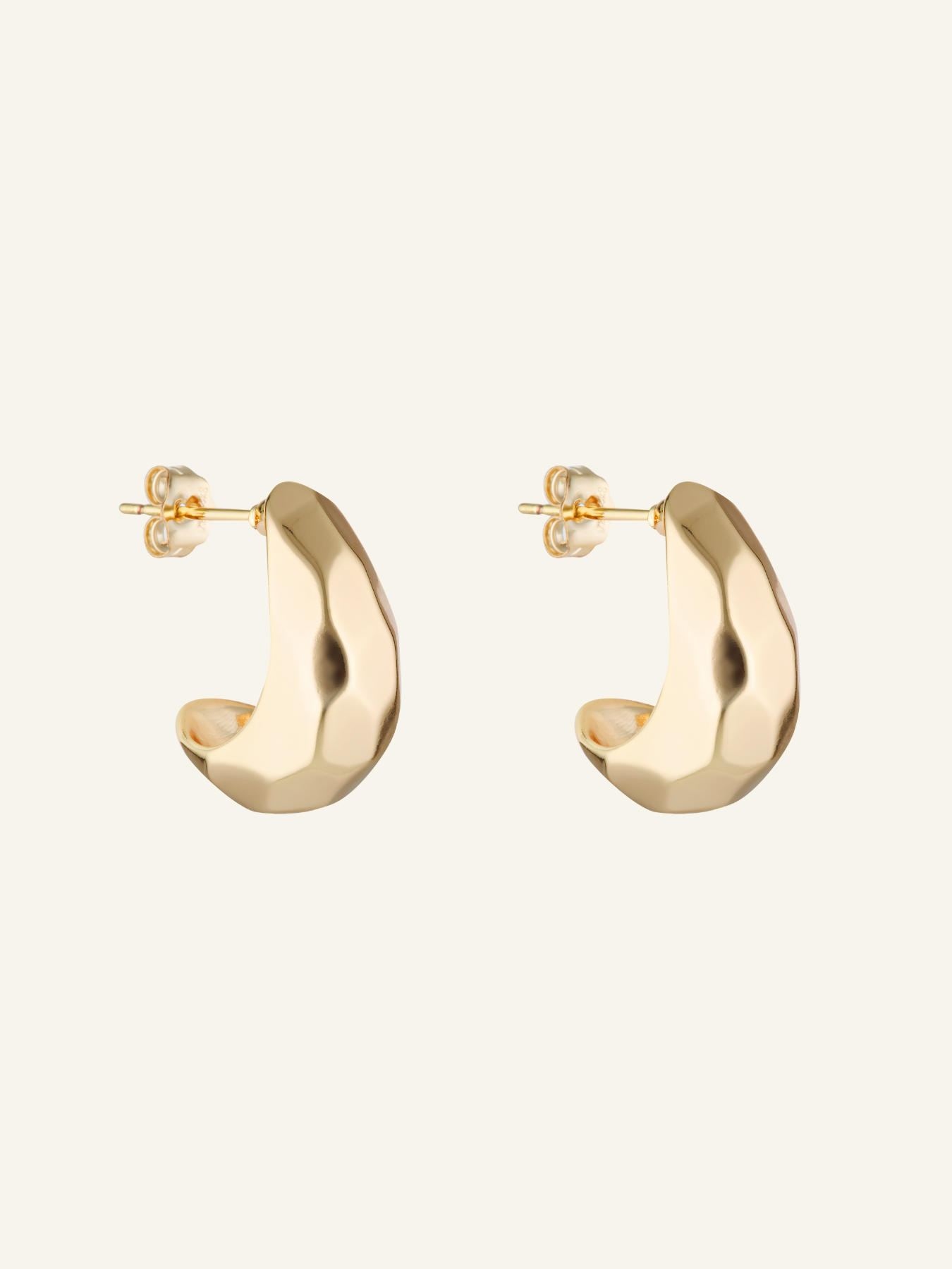 The Ines Hoops feature a hammered texture, c-shaped hoop.