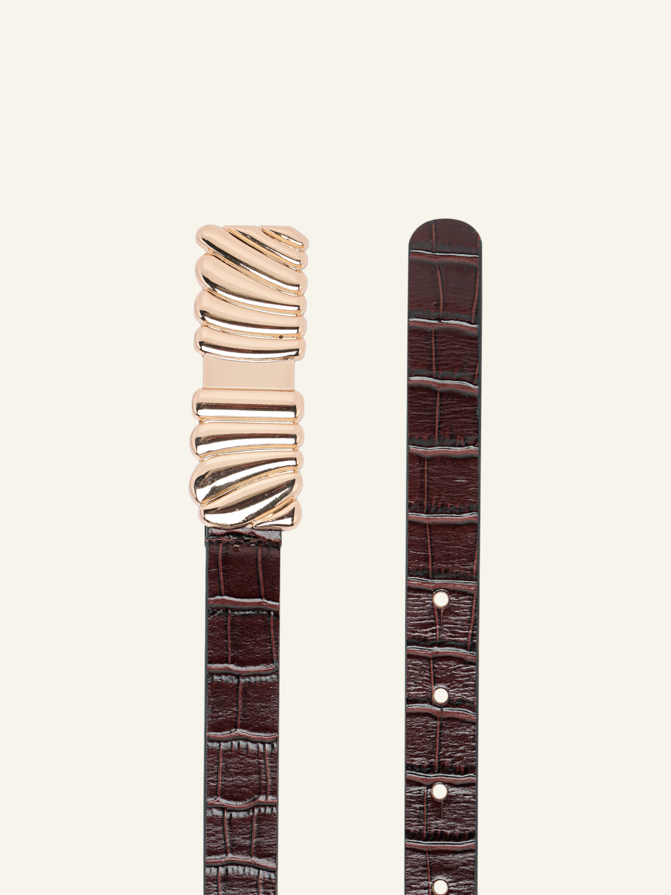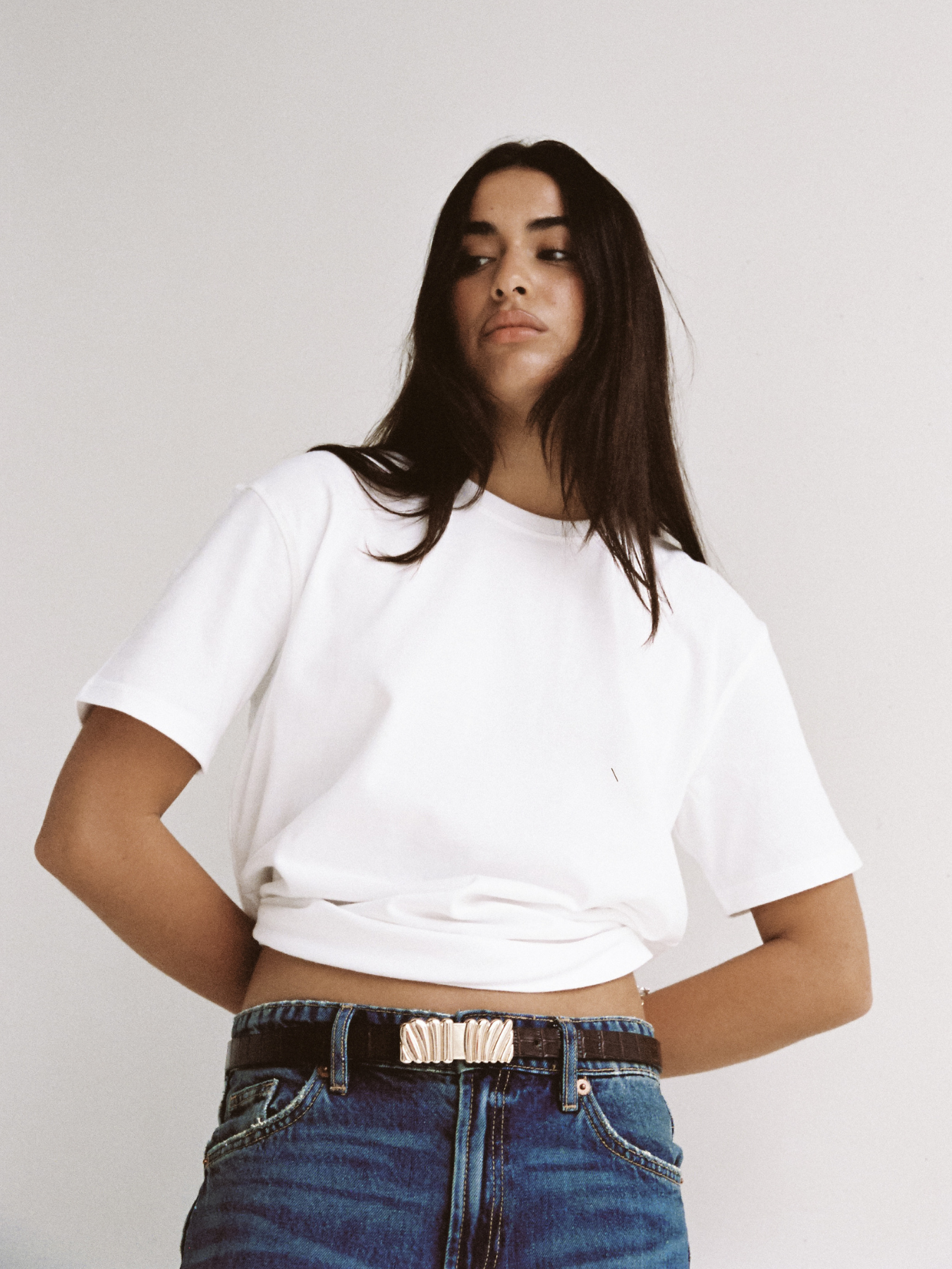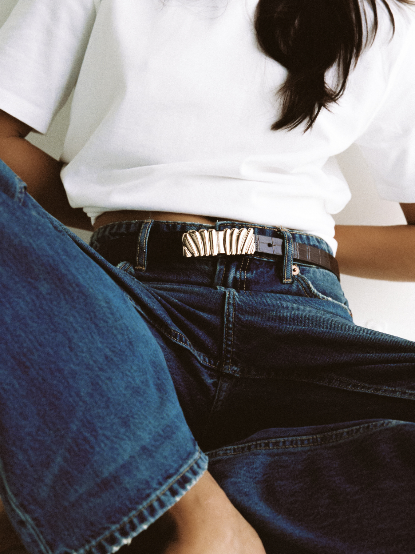 Add a luxurious statement to your everyday look with the Selene Belt. Made with 100% leather with a stone detail and a beautiful custom gold statement buckle.