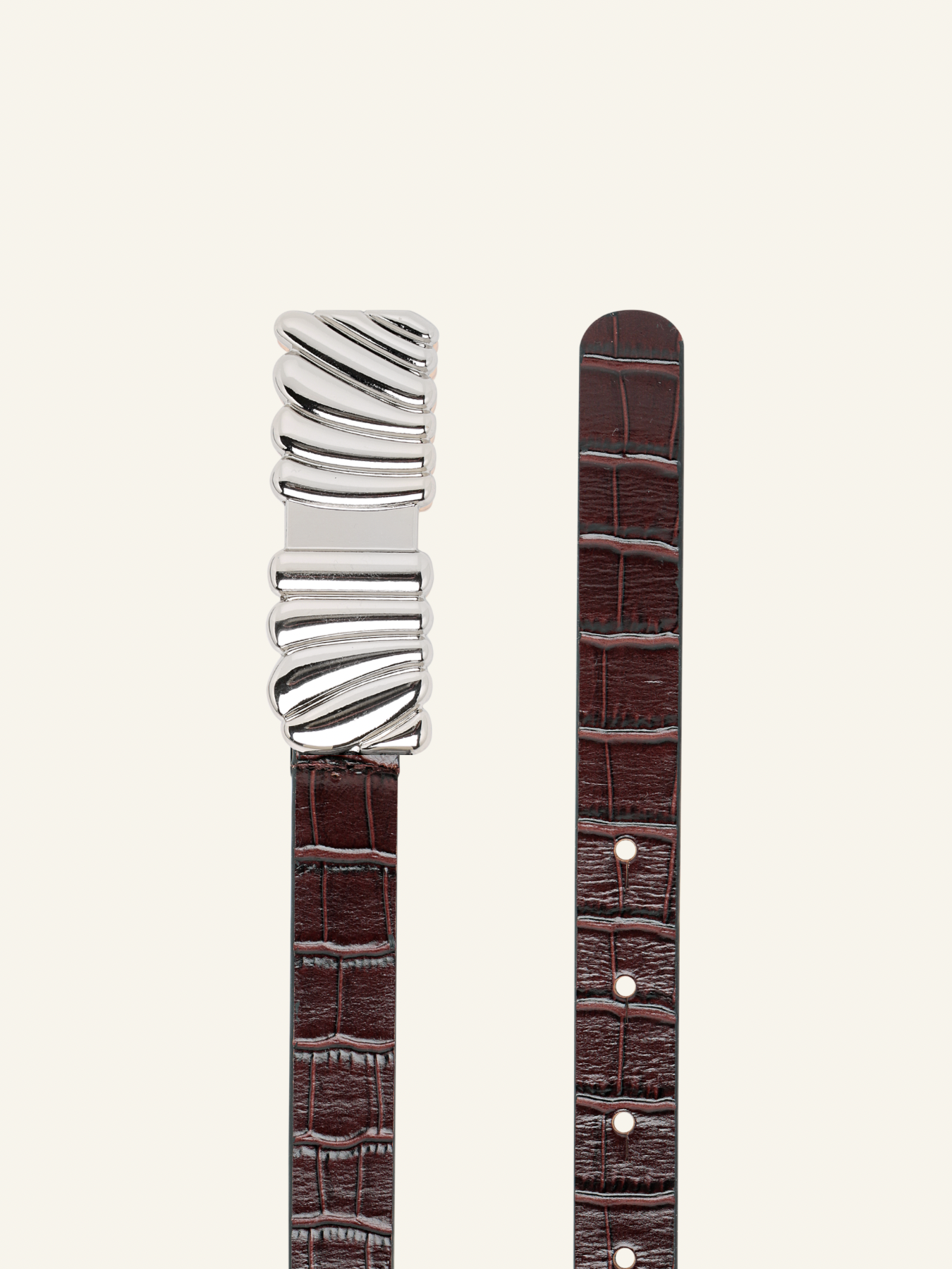 - Metal buckle detail