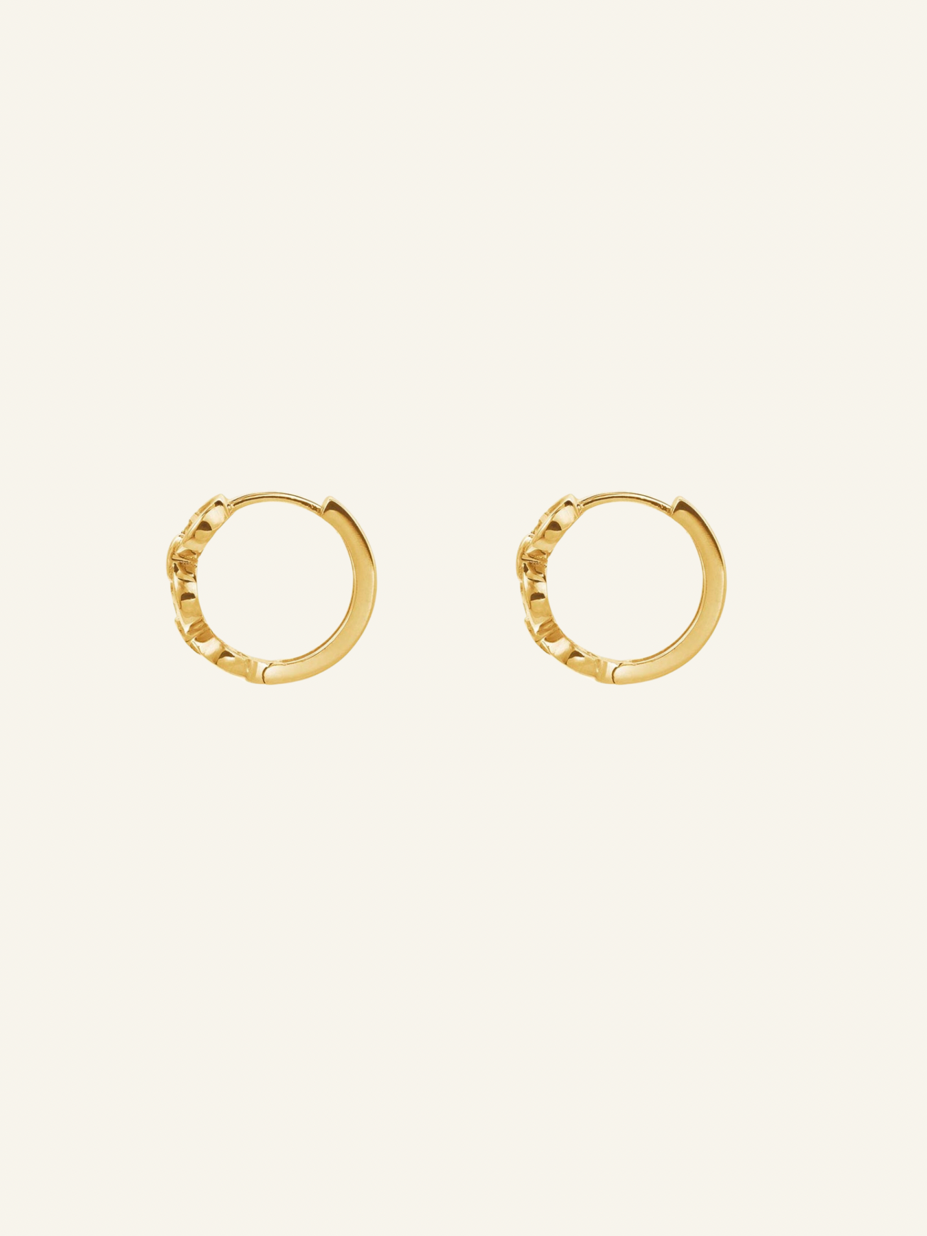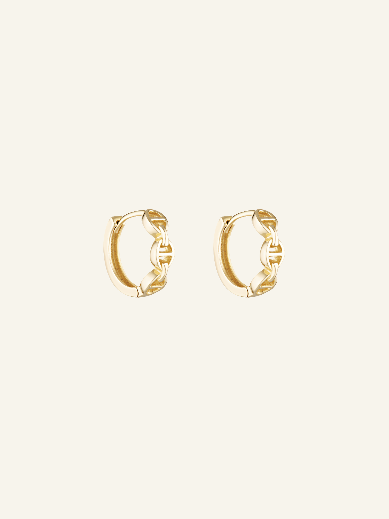 The Solid Gold Anchor Hoops features a huggie style with a anchor design. The perfect everyday stacking earrings.