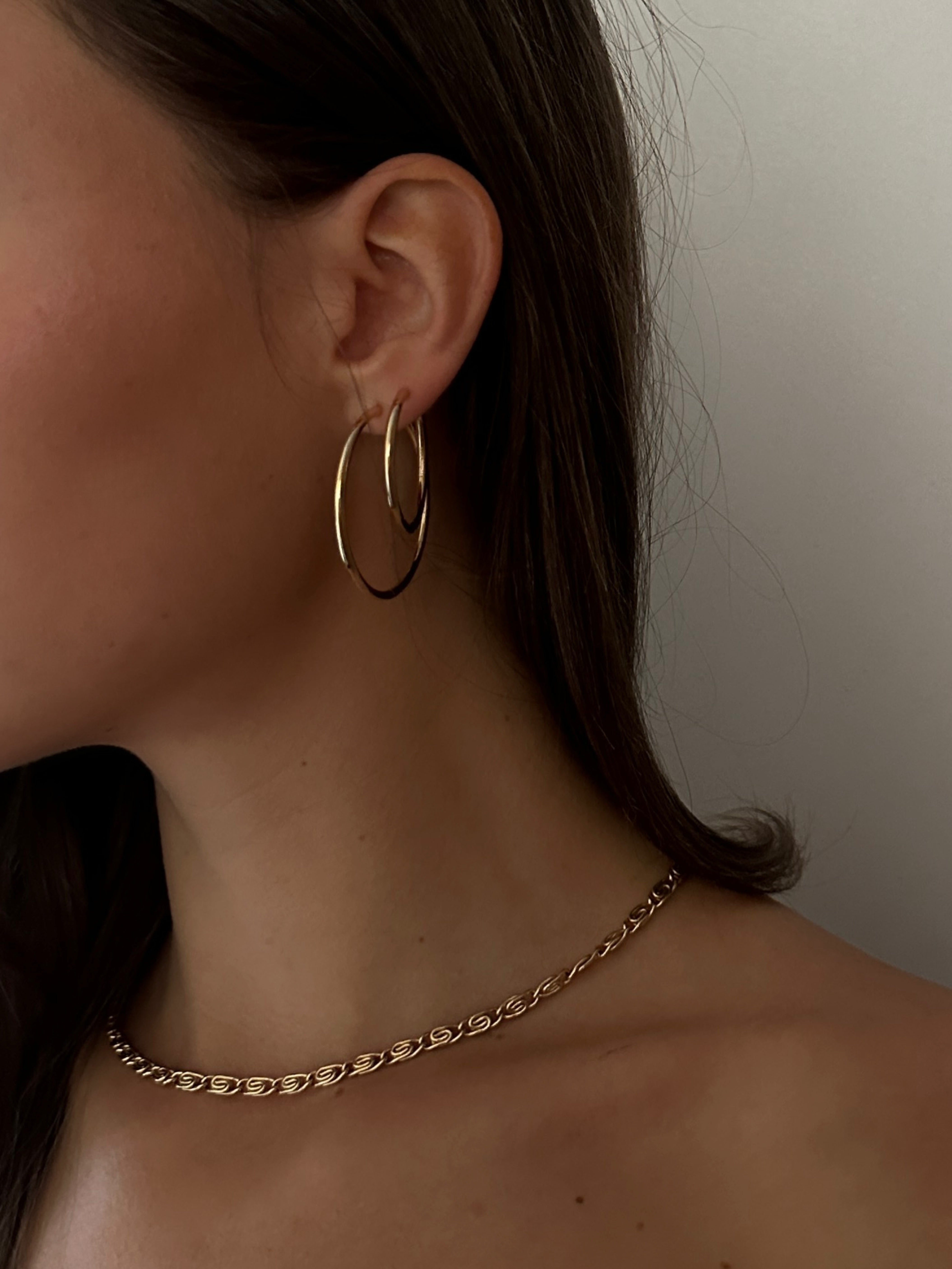 The Solid Gold Everyday Hoops, a classic sleeper style that is available in four sizes.