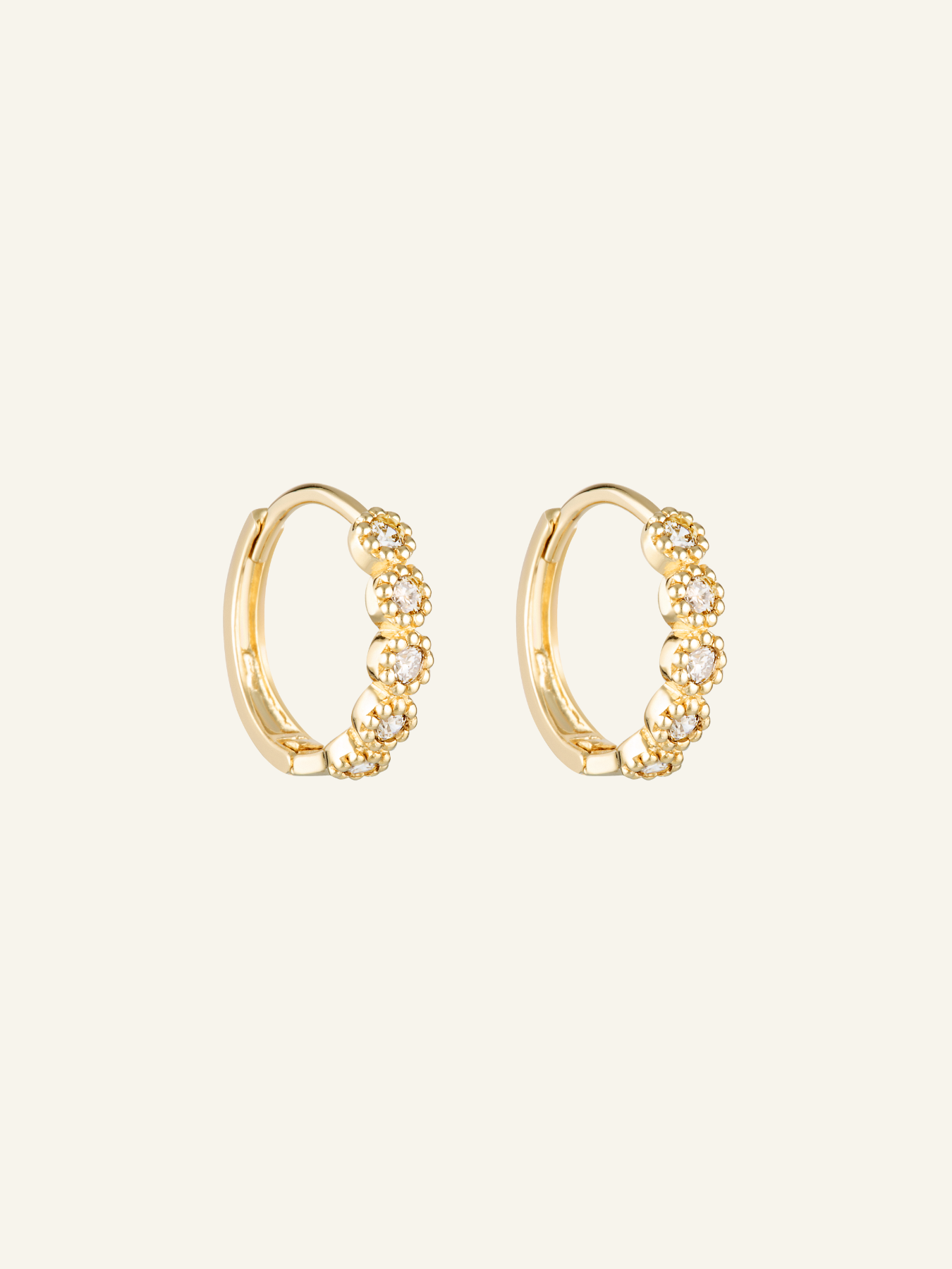 The Solid Gold Round Diamond Hoops features a huggie style with 5 X natural diamonds. The perfect everyday stacking earrings.