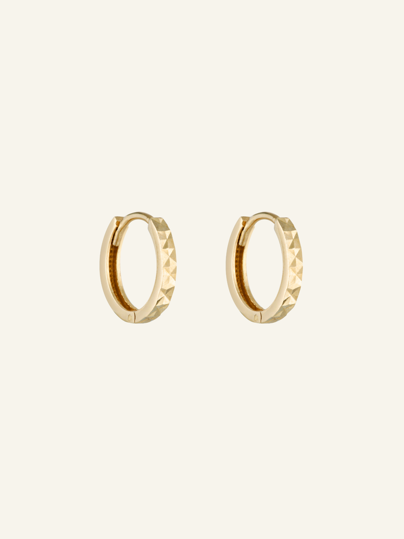 The Solid Gold Brushed Hoops features a huggie style with a brushed texture. The perfect everyday stacking earrings.