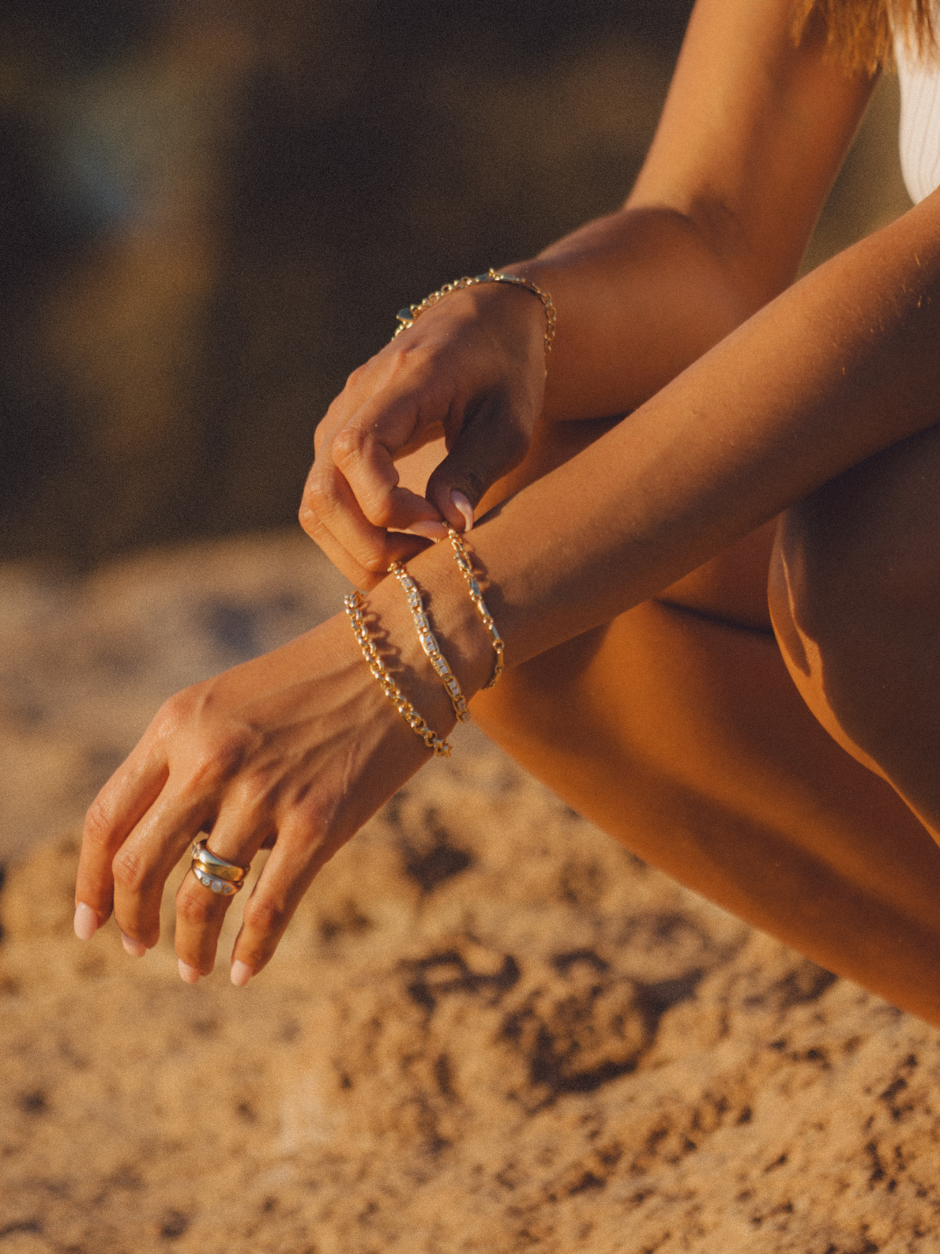 The Willow Bracelet draws inspiration from the timeless tennis bracelet, reimagined with a distinctive touch that reflects Love Isabelle’s unique style.