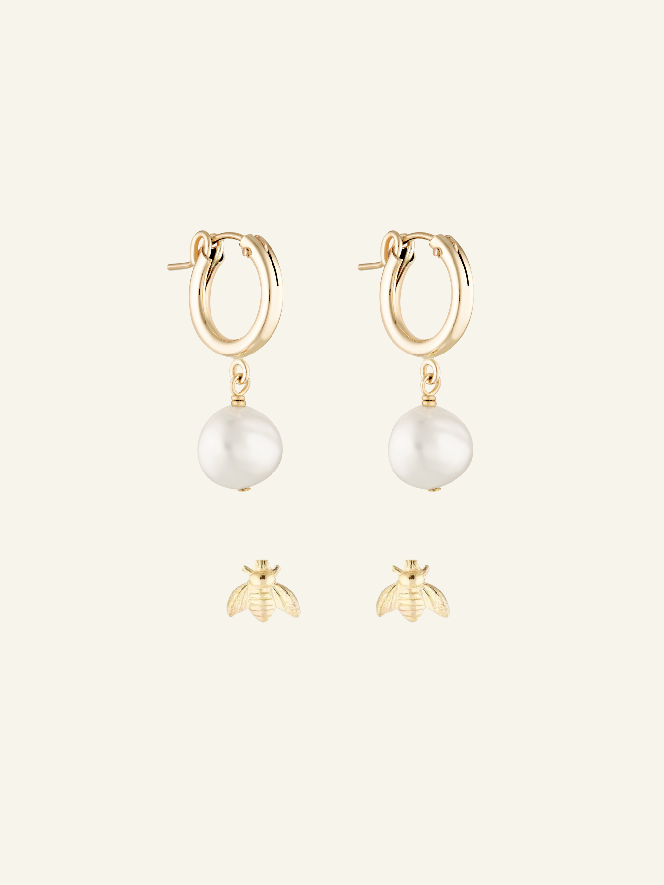 The Zara Bundle layers the best selling Zara Hoops and Bee Studs.