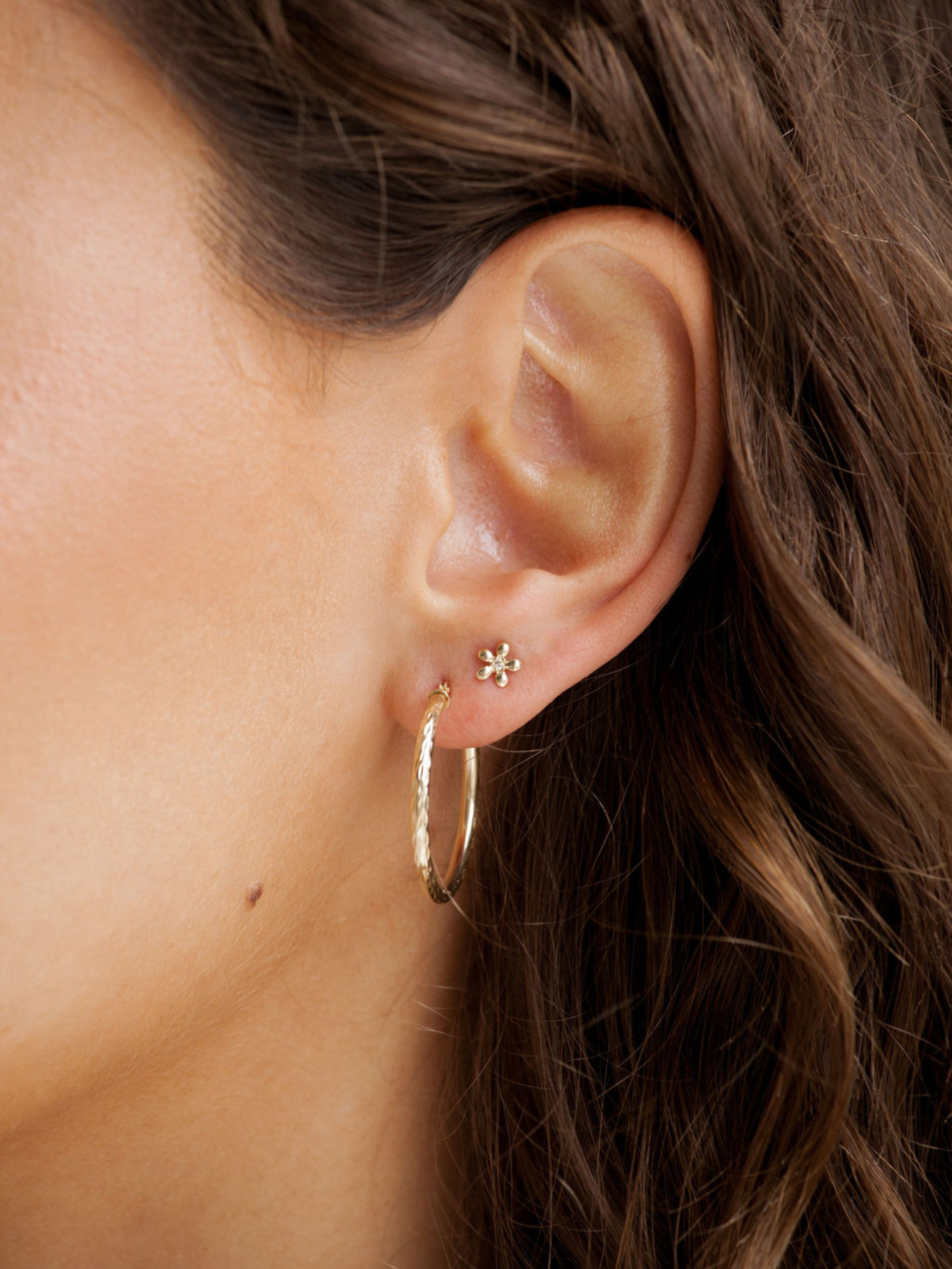 The 14k Diamond Flower Studs features a 5mm authentic diamond in a flower stud.
