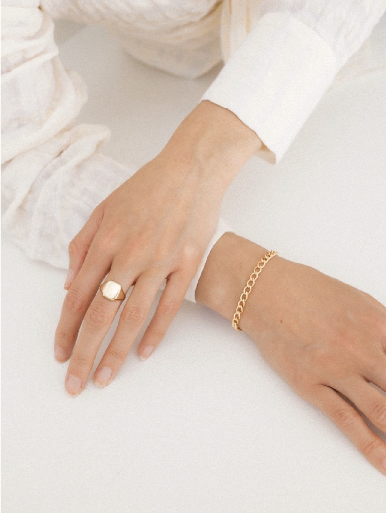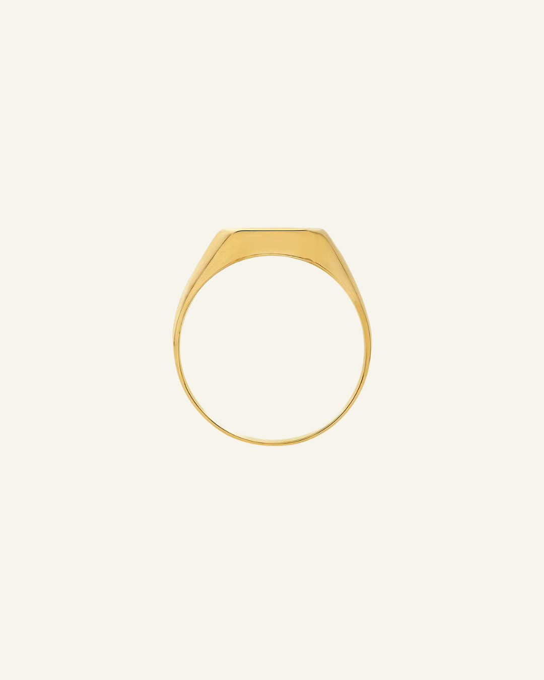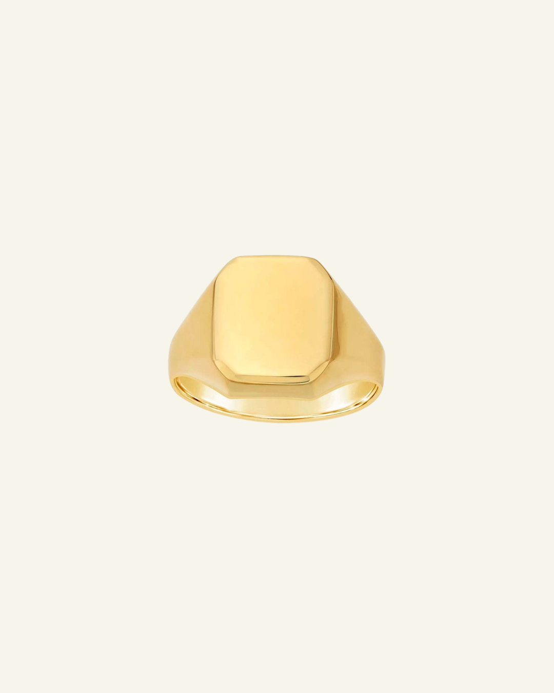 The 14k Solid Gold Octagon Signet Ring features a 11 x 9mm oval signet with a faint brushed finish. Carrying years of history, the Signet Ring is a timeless piece that will hold it's value for infinity.