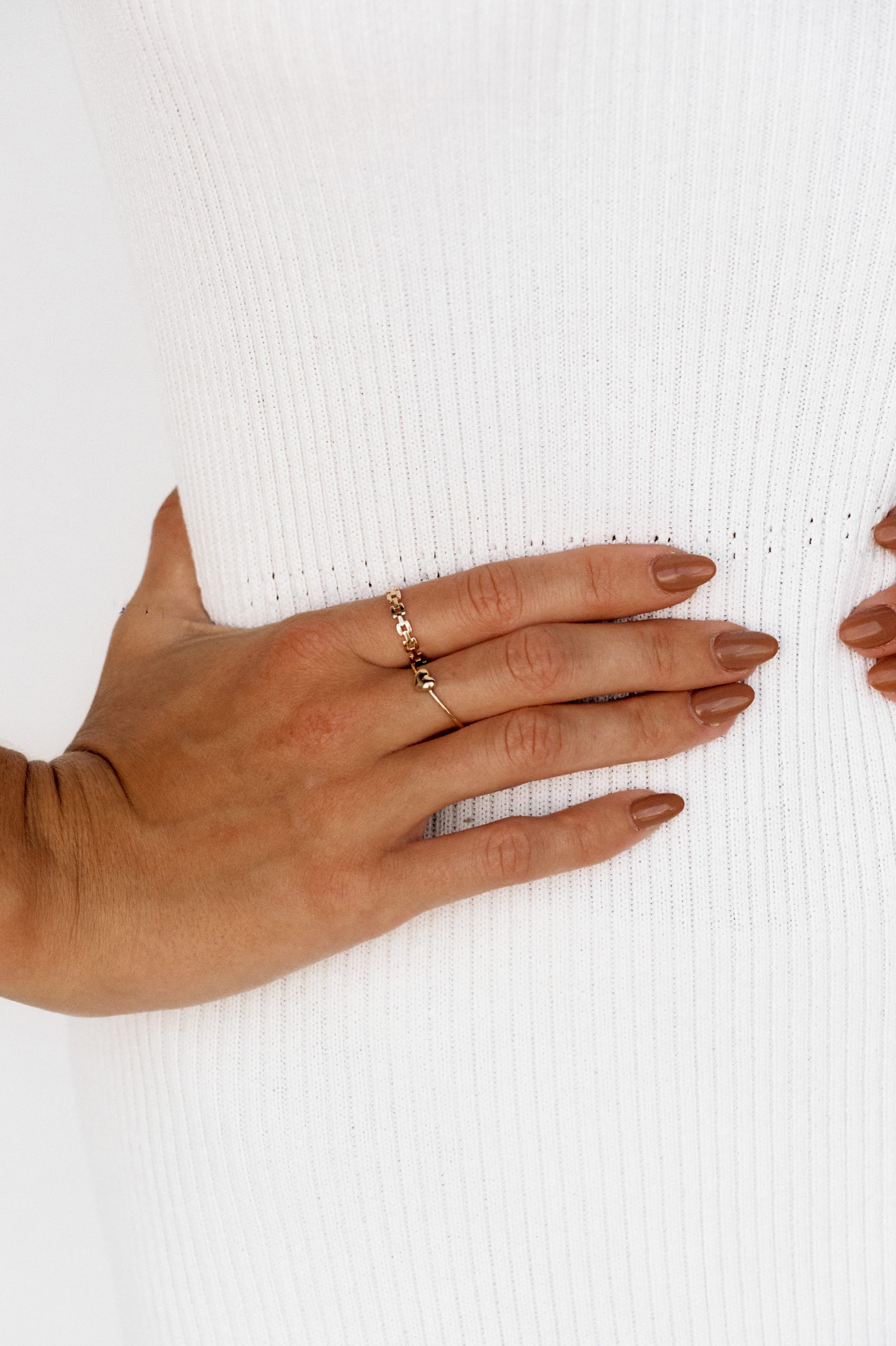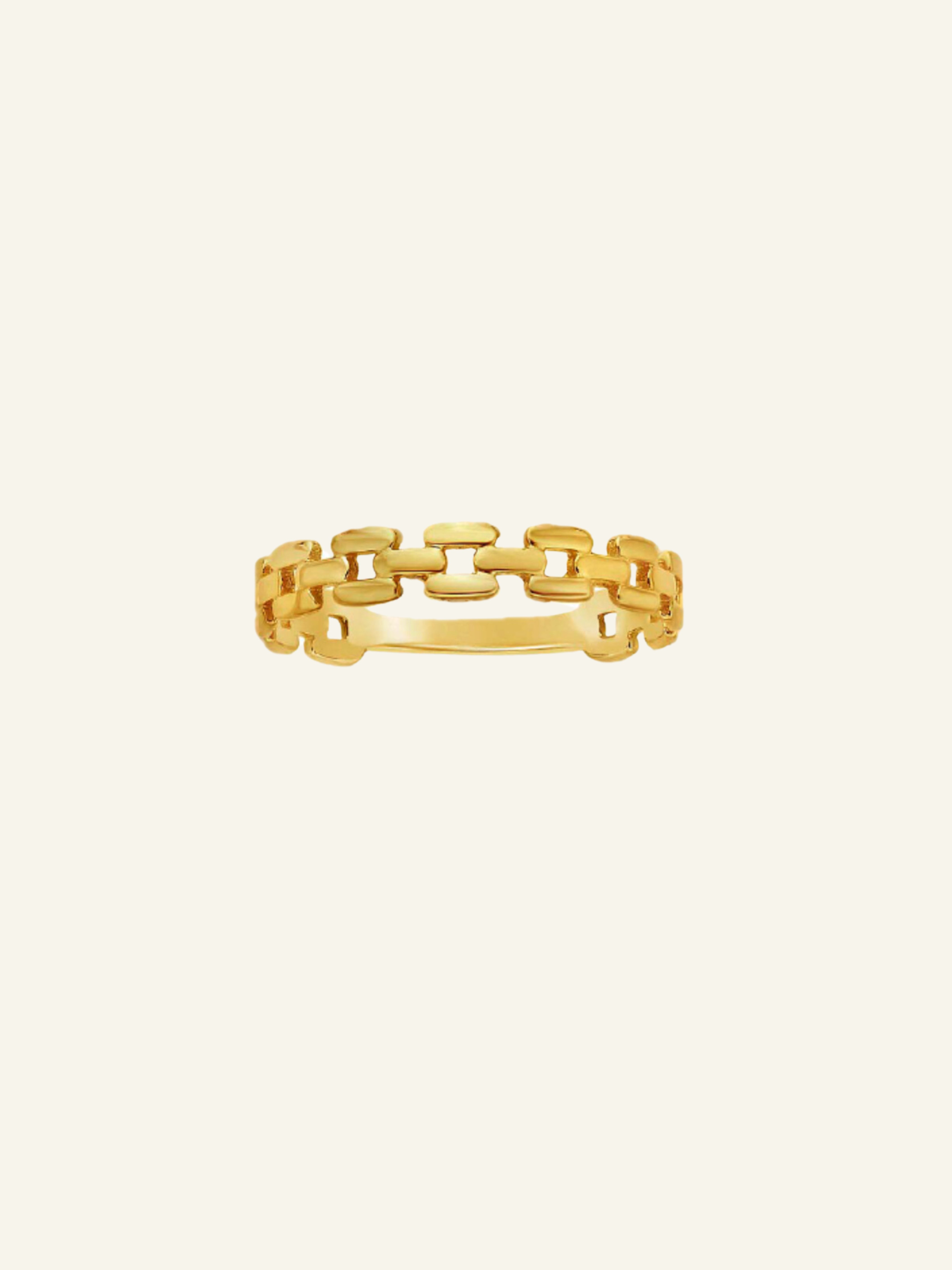 The 14k Solid Gold Link Ring features an open square link design with a bright finish.