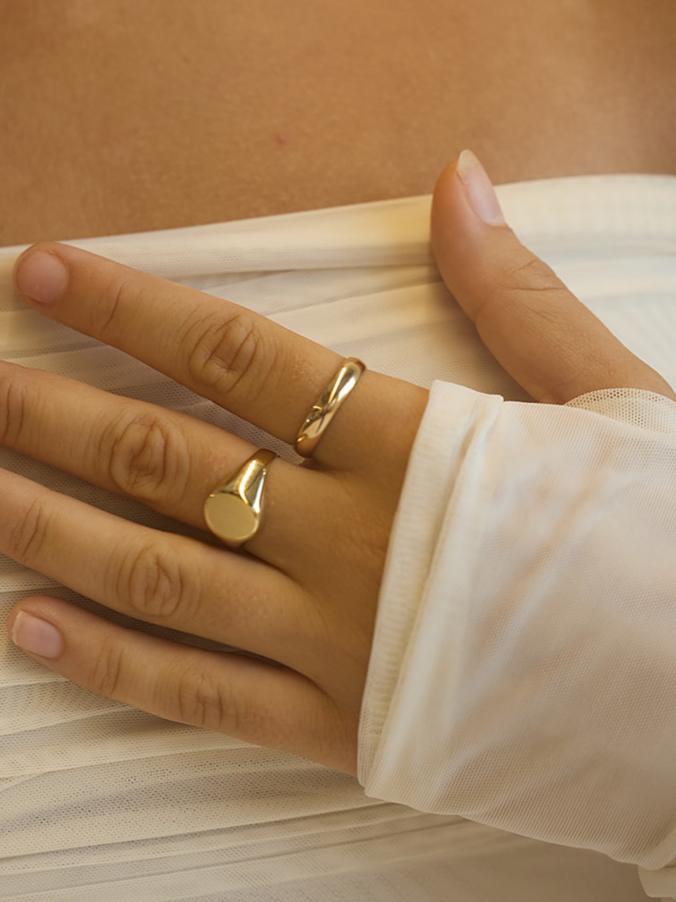 The 14k Solid Gold Thick Band Ring features a rounded surface and a flat, smooth interior. The perfect stackable ring to add to your collection.