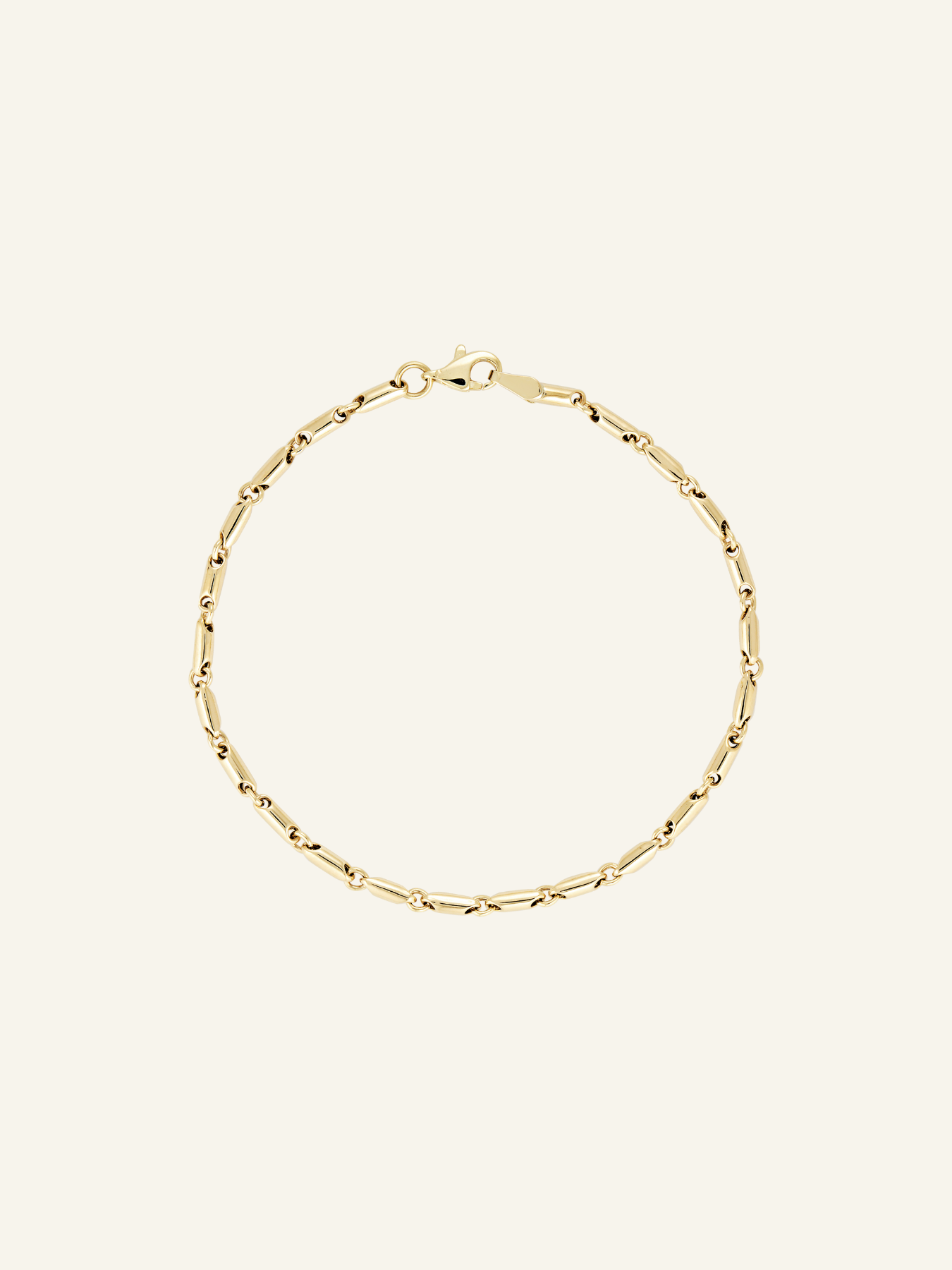 The 9k Solid Gold Bullet Link Bracelet features a bullet style link chain.
