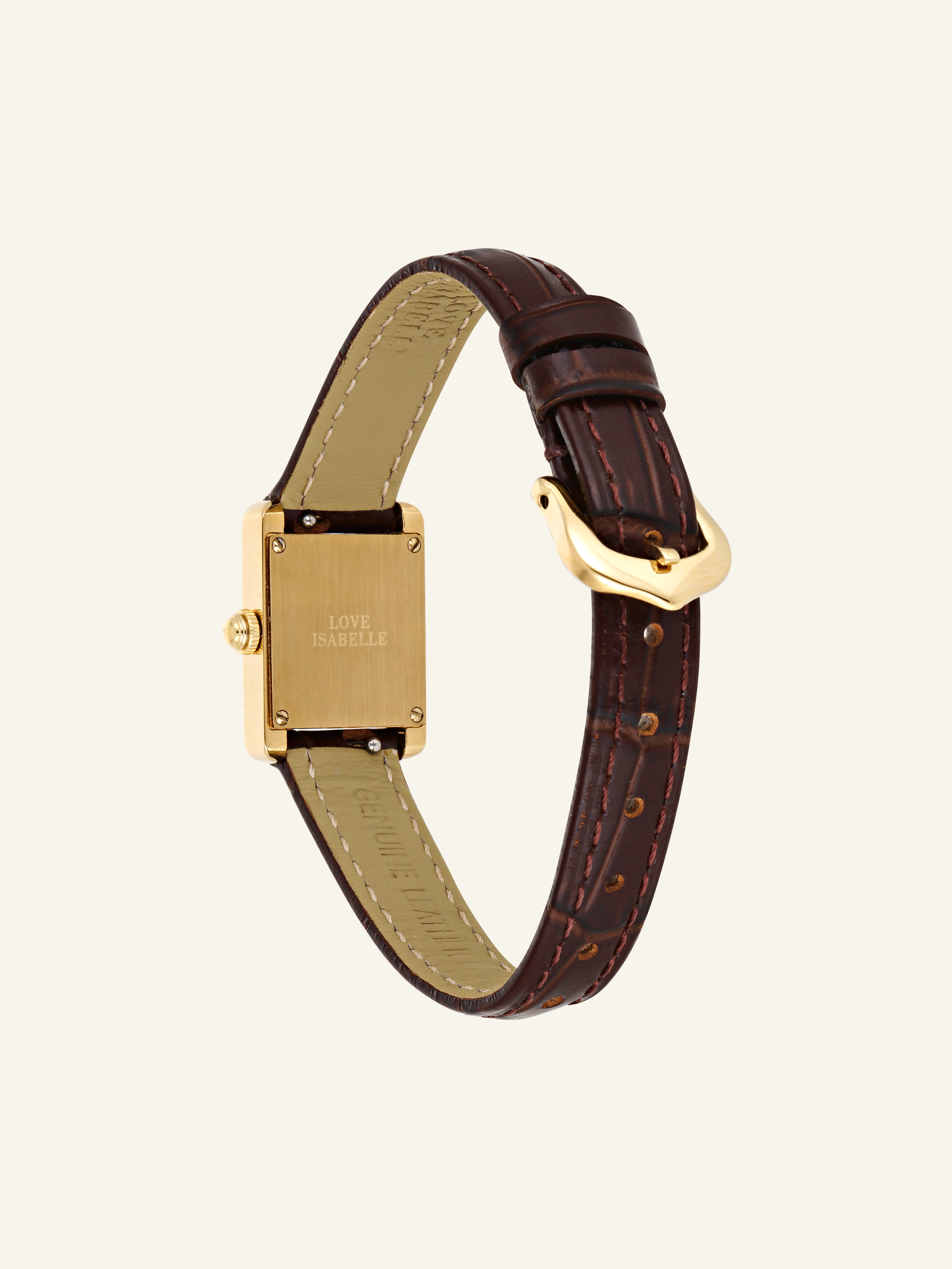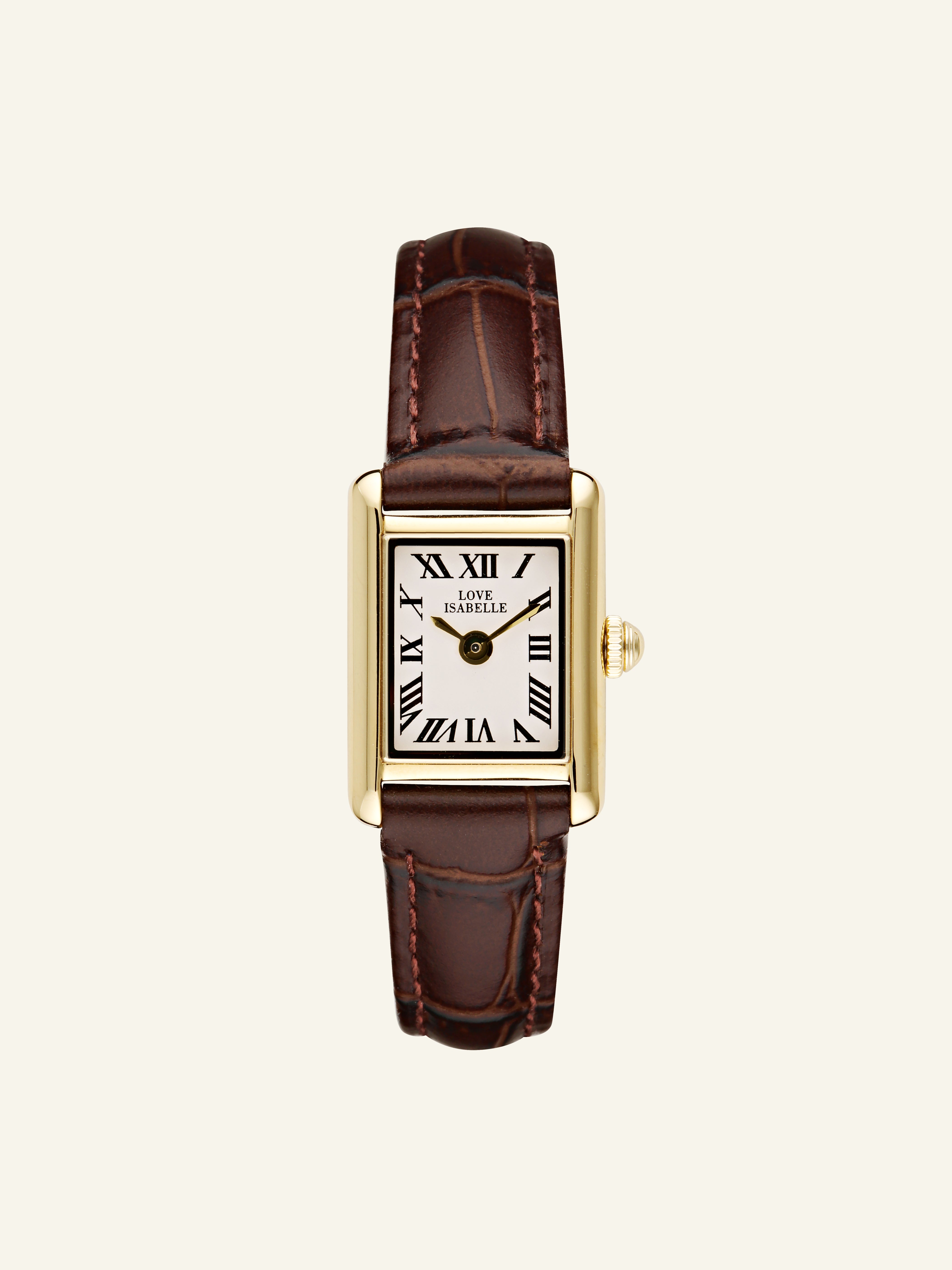 Love Isabelle introduces the Boston Watch, a heritage timepiece with a petite rectangular face with a classic leather strap. This piece effortlessly elevates any outfit, blending timeless design with modern chic.