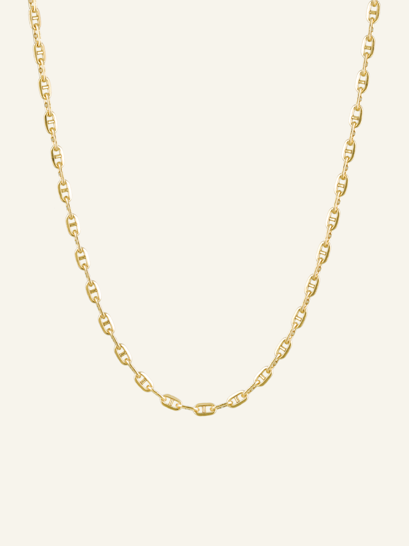The Gabi Necklace features a simple anchor chain, designed to be layered with your other favourite gold chains.