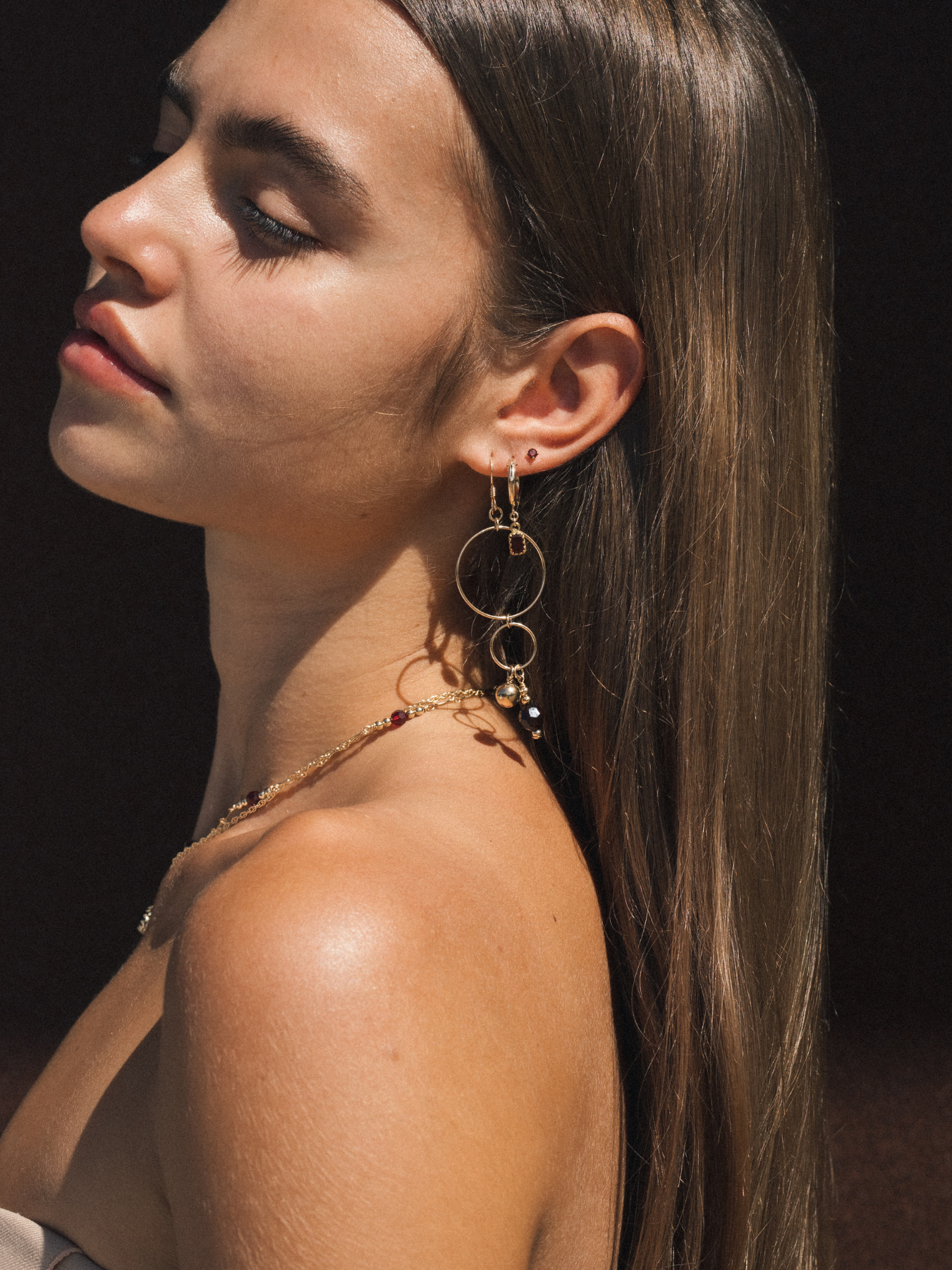 The Garnet Studs feature a garnet stone stud.