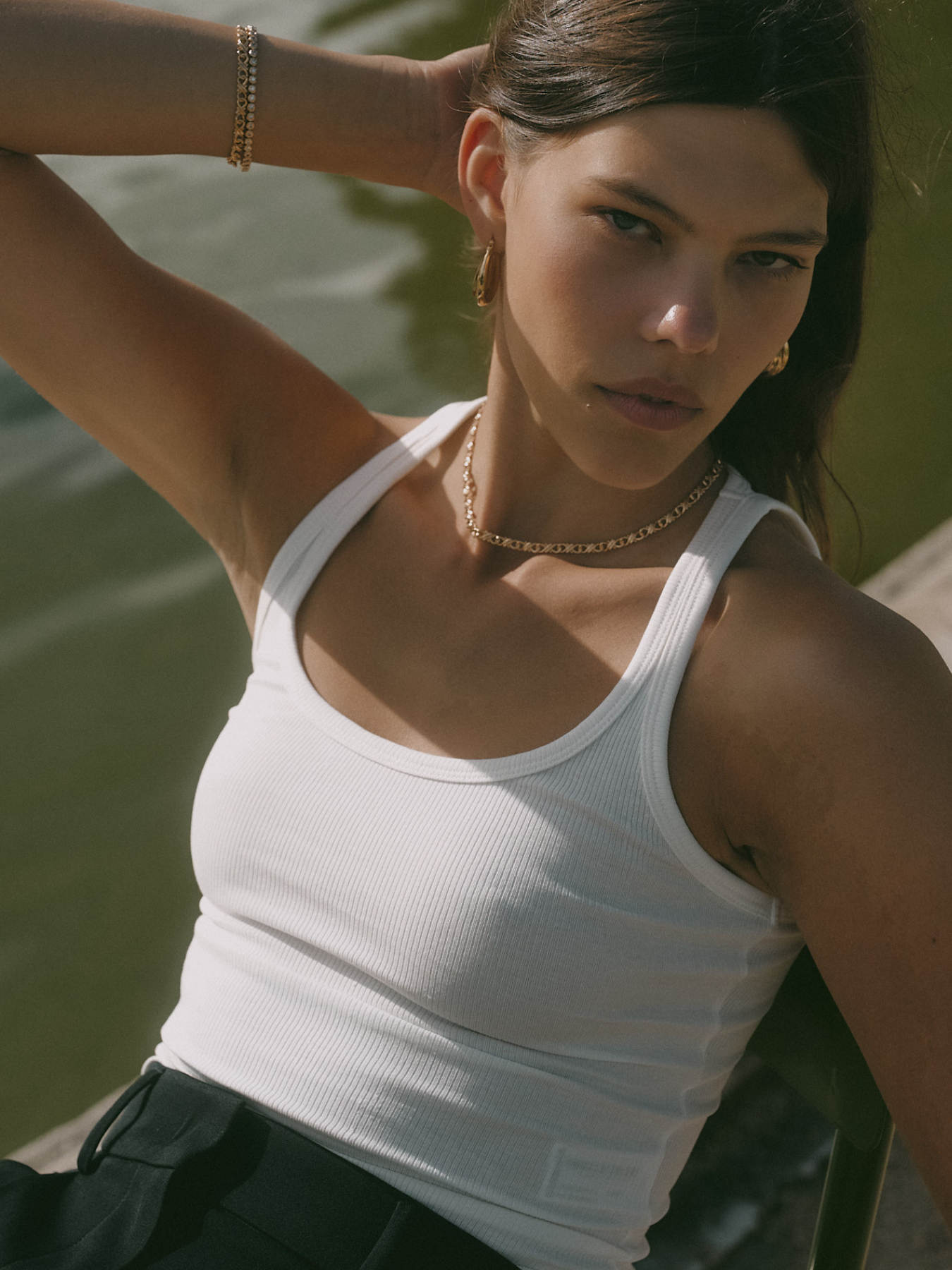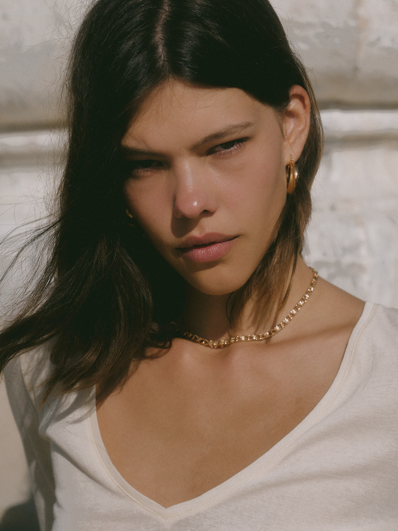 The Lou Necklace features a unique and vintage-inspired infinity chain.