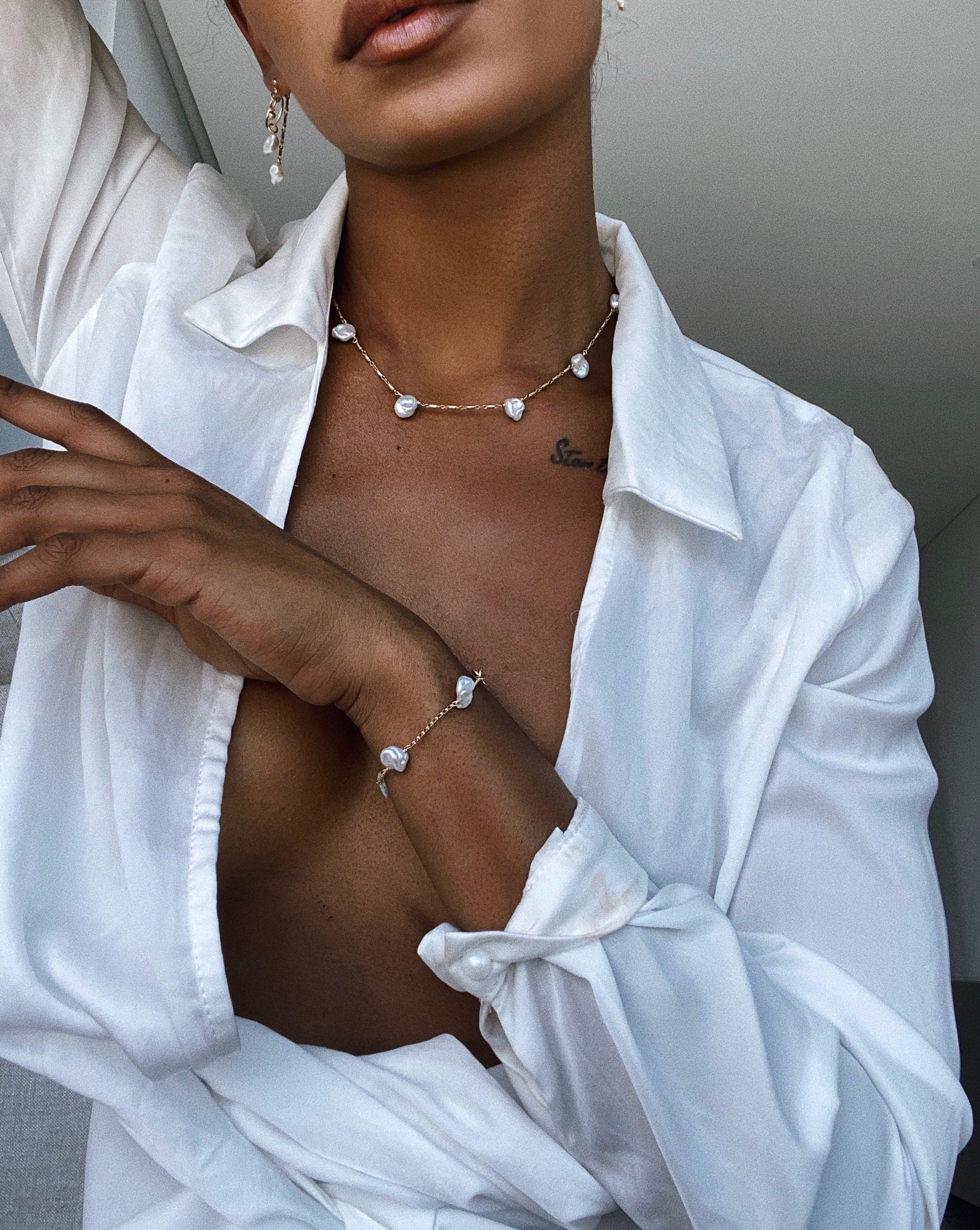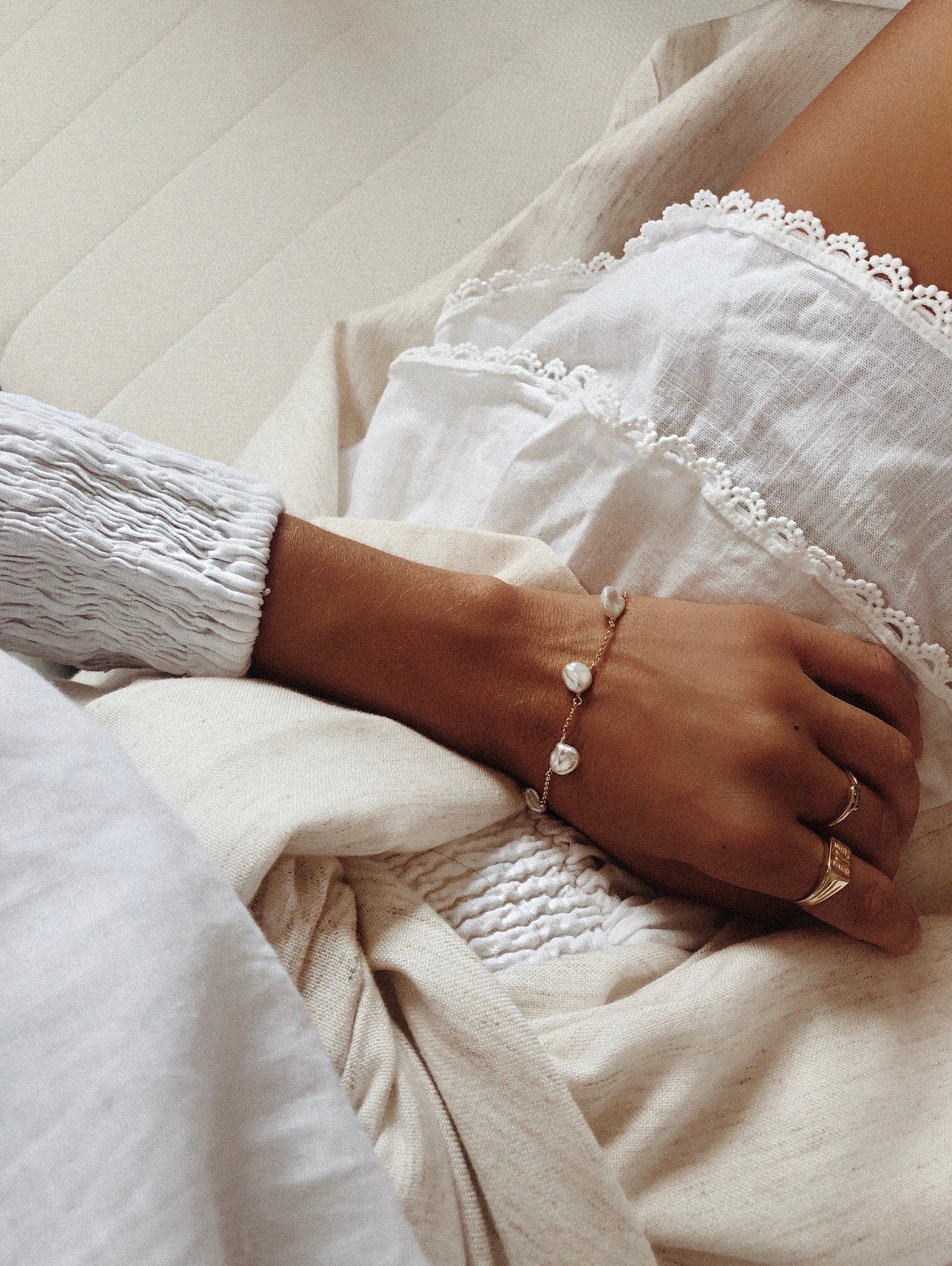 Because you loved the Lucia Necklace so much, we thought it was only suitable to turn it into bracelet too. Its dainty chain with freshwater pearls is the most special piece for a loved one.