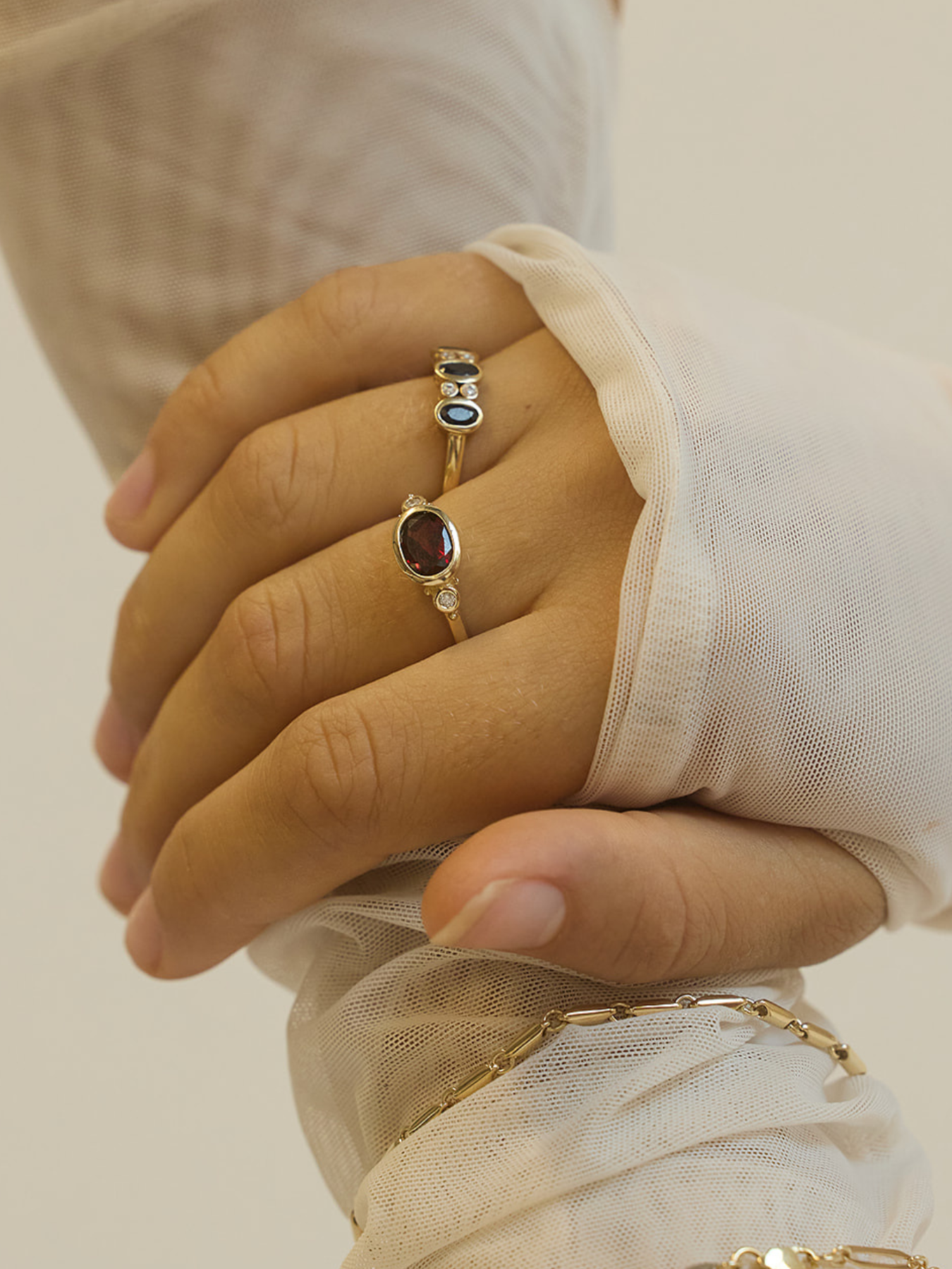 Solid Gold Garnet and Diamond Ring